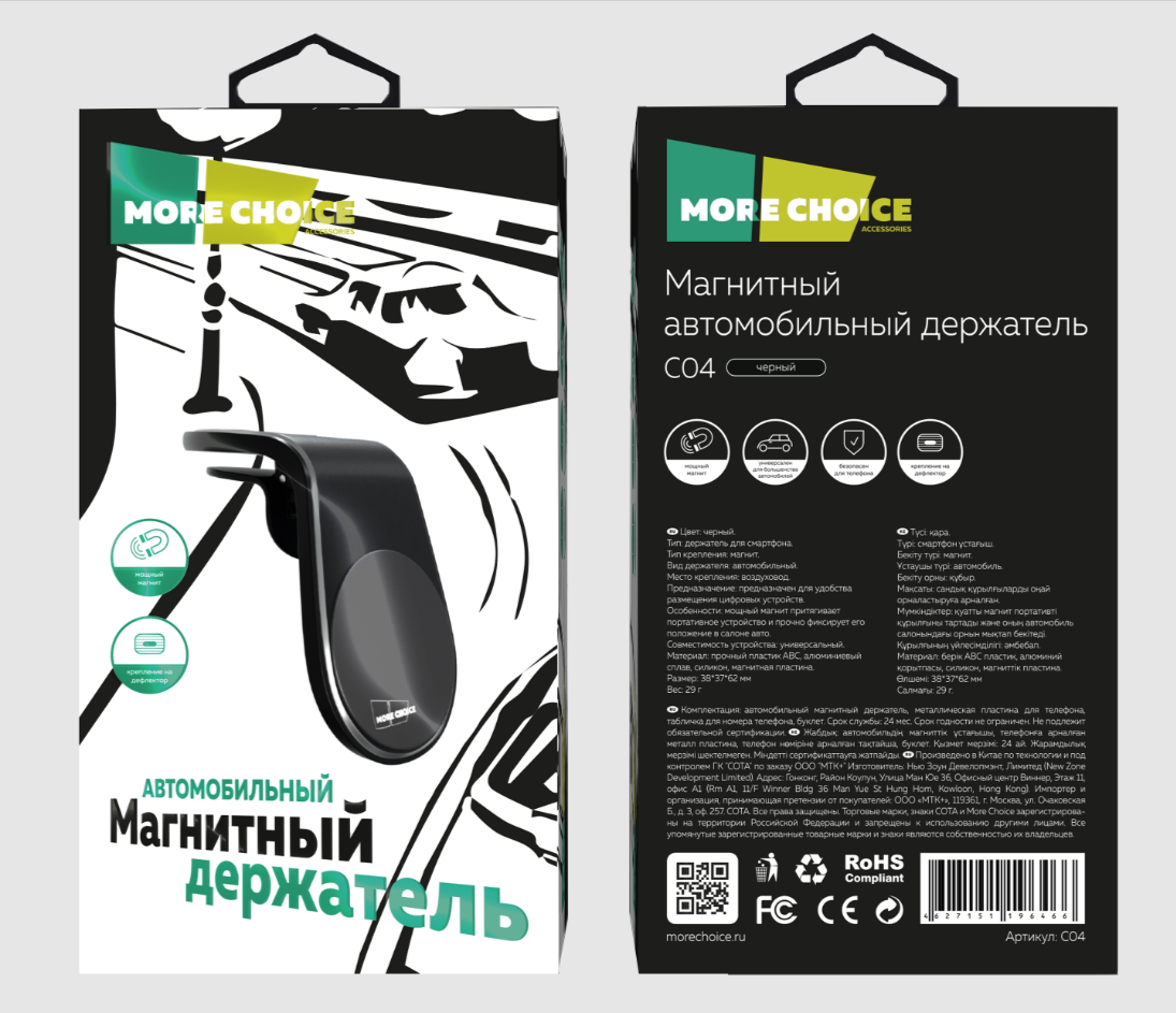 Держатель авто магнитный More Choise C04 предназначен для удобства резмещения цифровых устройств. Его особенности это мощный магнит, который притягивает портативное устройство и плотно фиксирует его положение в салоне.