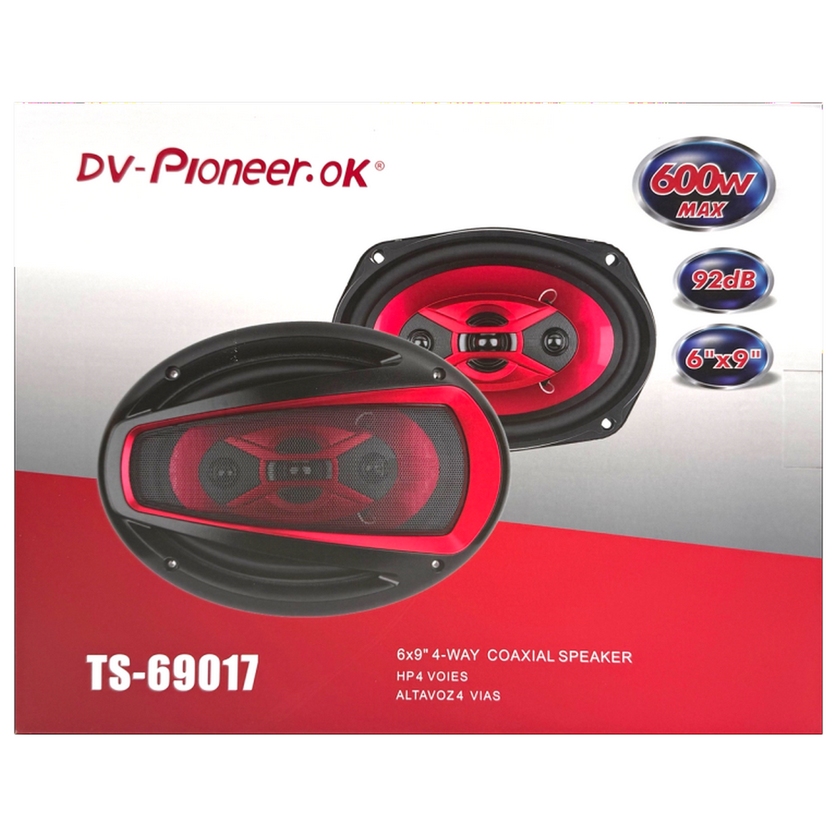 Автомобильные колонки TS‑69017 (комплект из 2 шт.) размером 16×24 см (6″×9″) — 4‑полосная коаксиальная акустика для качественного звучания в салоне автомобиля; обеспечивают широкий частотный диапазон и чёткую передачу вокала и инструментальных партий; номинальная мощность — 150 Вт, максимальная — 600 Вт, мощность RMS - 350 ВТ, чувствительность — 92 дБ, импеданс — 4 Ом; звуковая катушка - 25 мм, магнит - 100 х 15 мм, твитер - 57 мм.