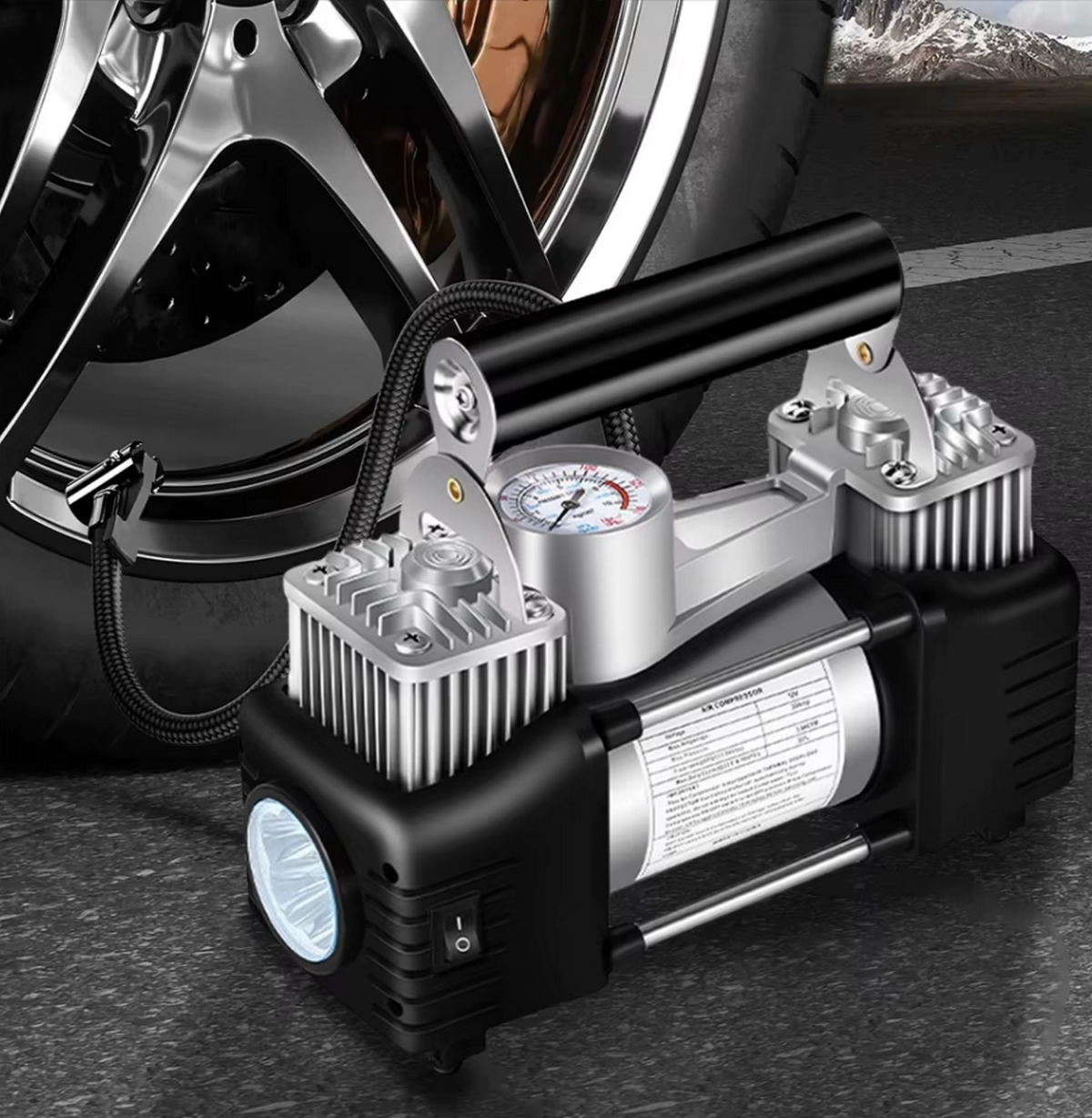 Автомобильный компрессор двухцилиндровый для повышения давления воздуха в покрышках или камерах колес. Производительность компрессора для накачки – 85 л/мин.