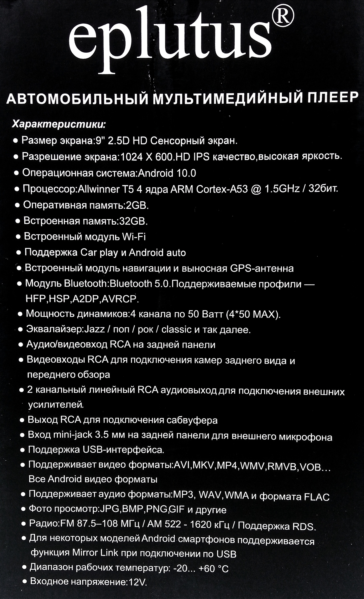 Компактная автомобильная магнитола Eplutus CA900 выполнена в конструктиве din 2 и представляет собой универсальное мультимедийное устройство.