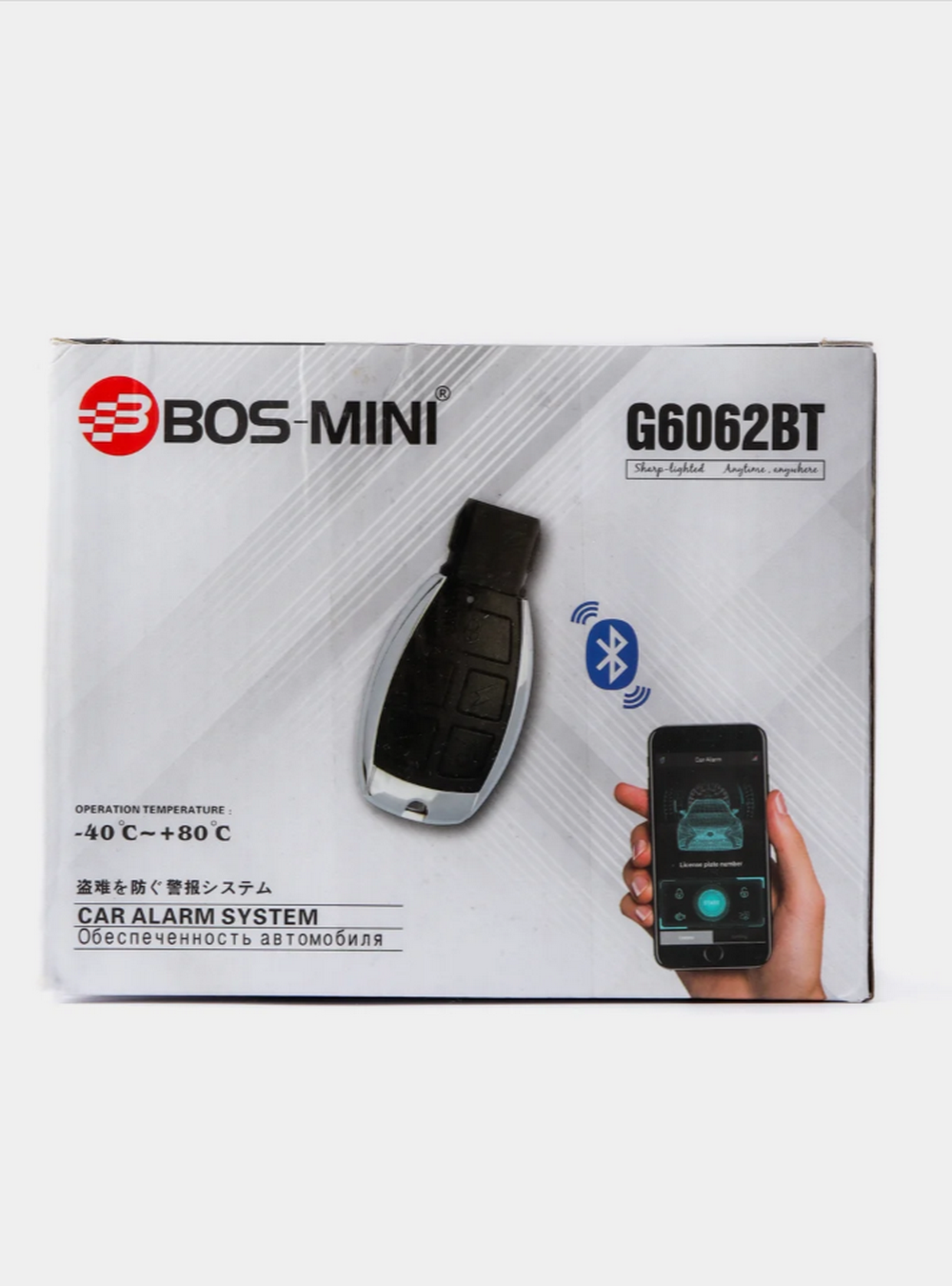Автосигнализация с сиреной «Набор» Bluetooth Bos‑Mini G6062BT — современная охранная система с управлением через смартфон и классическим брелком. Оснащена Bluetooth‑модулем и CAN‑интерфейсом для постановки/снятия с охраны, контроля состояния и управления центральными замками через мобильное приложение. Включает центральный блок, сирену, два брелока и комплект проводов для подключения. Обеспечивает блокировку двигателя, реакцию на удар и вскрытие, активацию звуковой и световой сигнализации при тревоге. Двухуровневый датчик удара повышает надёжность: после успокоения системы он автоматически перезапускается через 4 минуты. Корпус из ABS‑пластика и металла устойчив к вибрациям и перепадам температур (рабочий диапазон −40 … +80 °C). Система легко интегрируется в большинство автомобилей благодаря CAN‑шине, отличается простой установкой и компактным блоком.