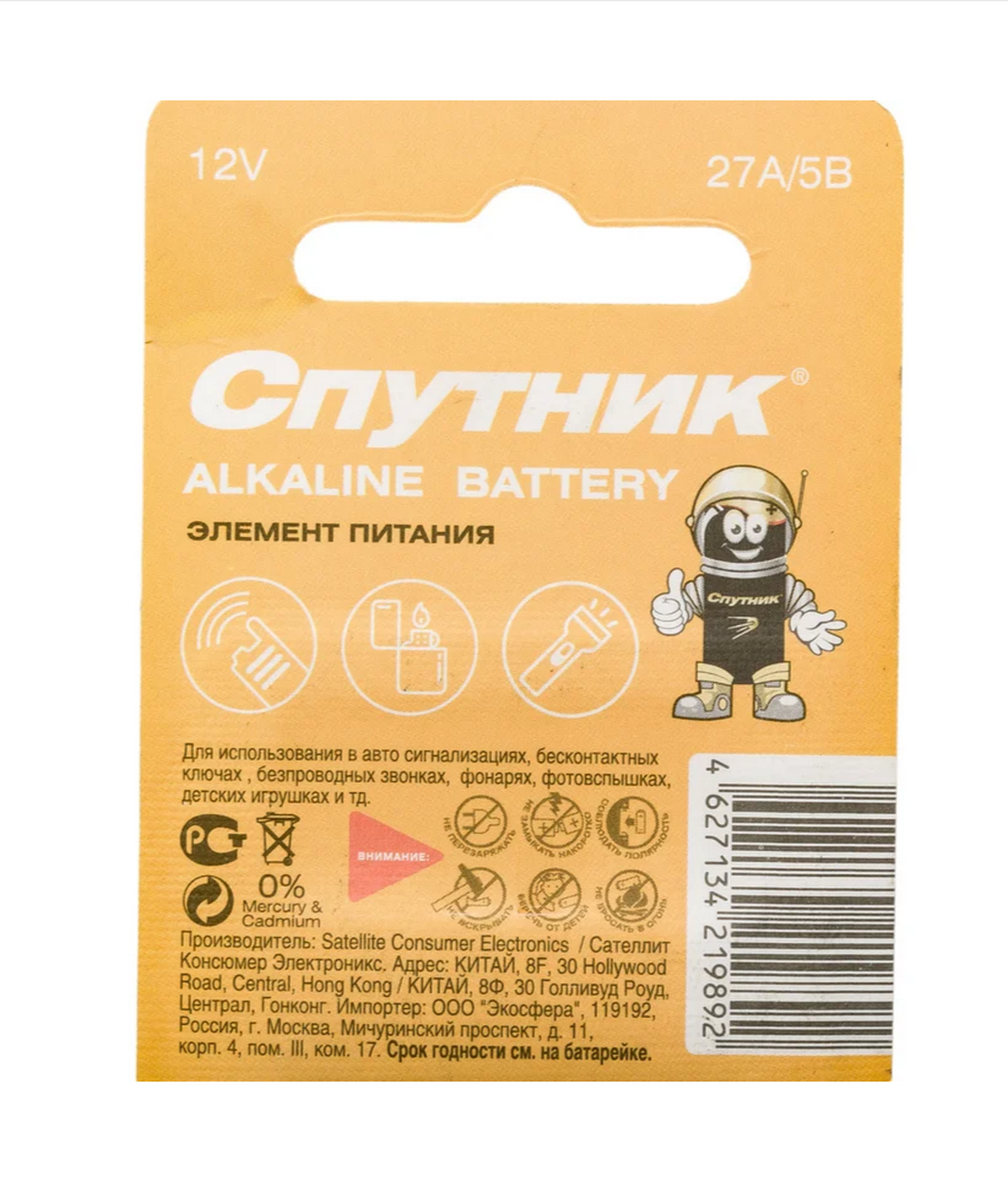 Элемент питания Спутник комплект 5 шт. ALKALINE BATTERY 27А/5B являются источниками питания повышенной ёмкости для приборов с высоким и средним энергопотреблением, обеспечивают стабильную и продолжительную работу. Основным преимуществом является увеличенная энергоёмкость алкалиновых элементов питания (по сравнению с солевыми), а так же полный серийный ряд, ультрасовременная упаковка, большой срок хранения и отличное соотношение цены и качества.