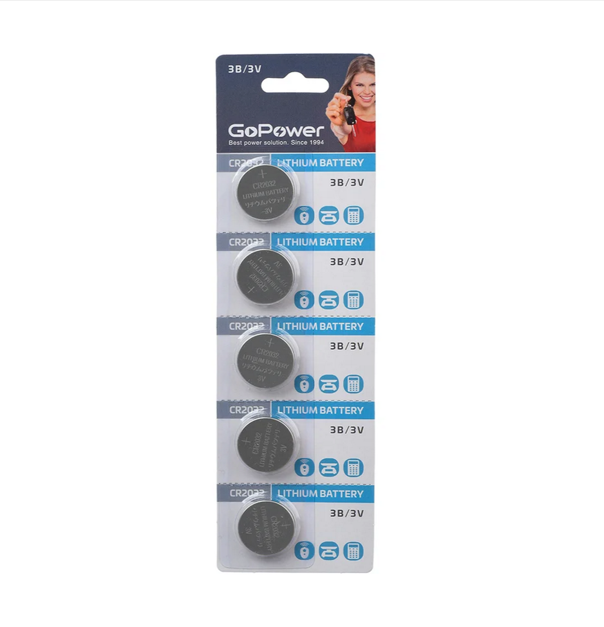 Батарейка GoPower CR2032 BL5 Lithium 3V (5/100/2000) 00-00015603 широко используется в пультах автомобильной сигнализации, часах, кухонных весах, часах и других устройствах бытового и промышленного назначения.