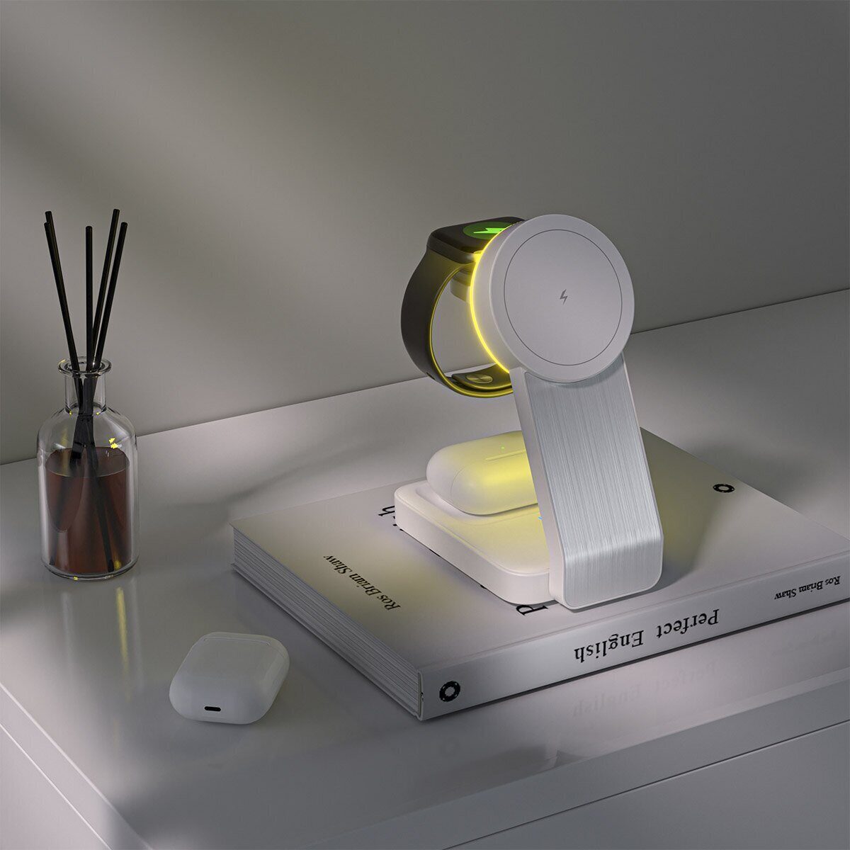 Зарядное устройство MIVO MW-06 – это складная беспроводная зарядная станция, универсальное устройство для беспроводной быстрой зарядки всех моделей гаджетов, поддерживающих технологию беспроводной зарядки. Возможно одновременно заряжать смартфон, наушники и часы. Встроенный интерфейс беспроводной автоматической индукционной быстрой зарядки 15W делает процесс зарядки еще более быстрым и эффективным.