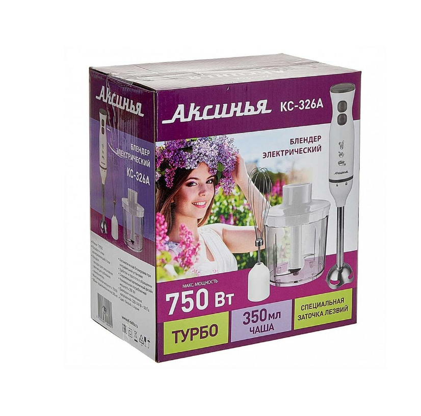 В комплекте: Блендер Аксинья КС-326A. Насадки 3 шт. Руководство. Упаковка