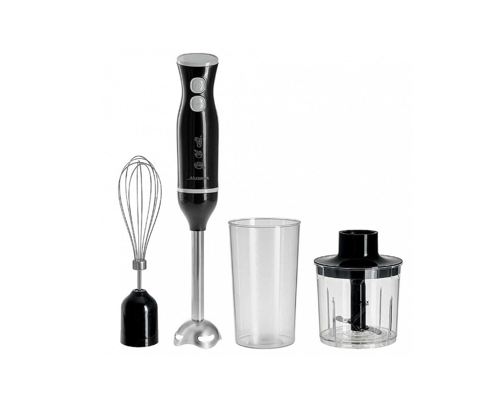 Три сменные насадки: насадка для смешивания, венчик для взбивания, измельчитель с крышкой.