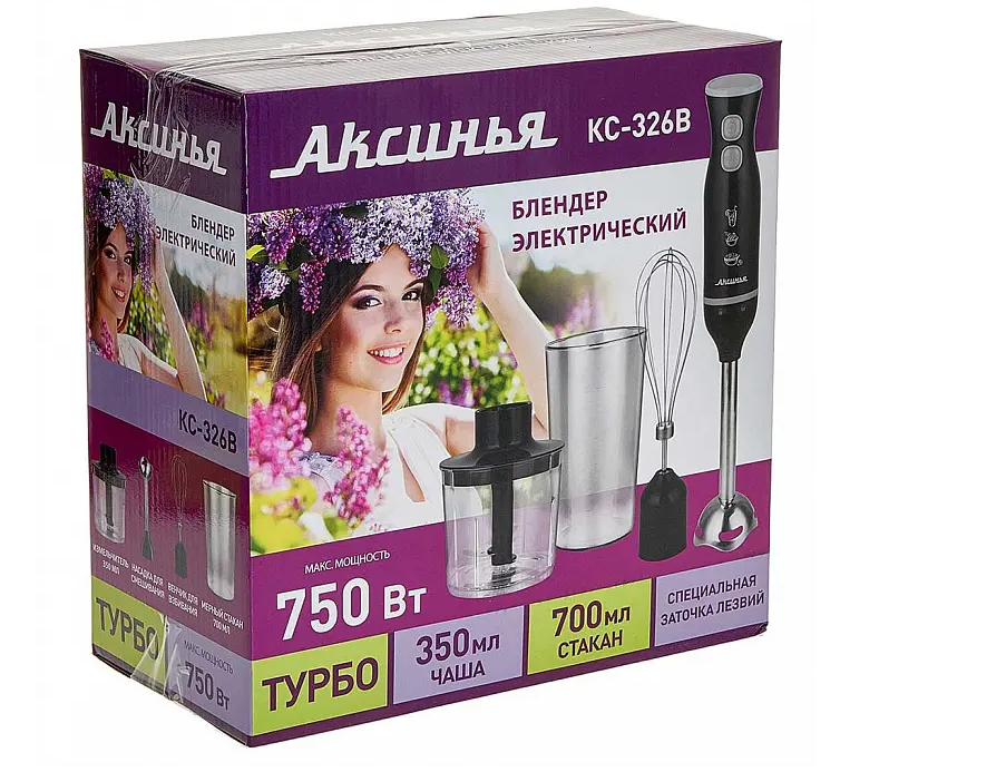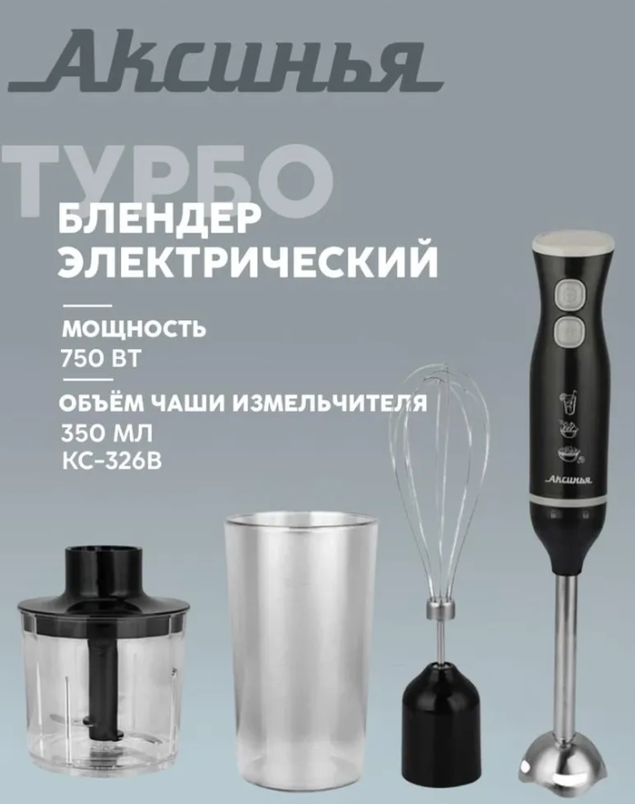750 Вт. Нескользящее основание. Комплектация: Блендер Аксинья КС-326B.
