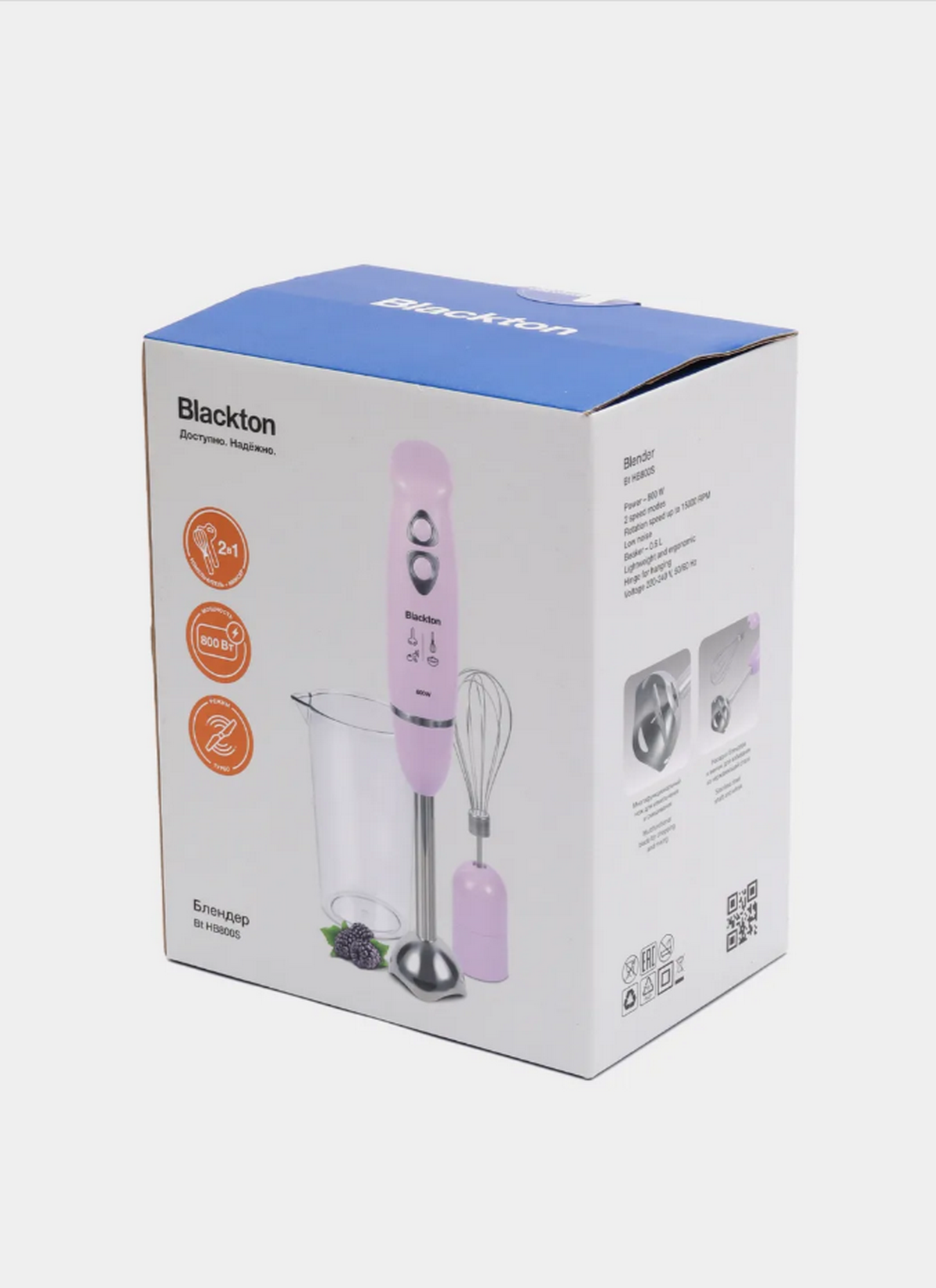 Блендер Blackton Bt HB800S – это многофункциональный помощник, который позволяет быстро справляться со смешиванием и взбиванием различных продуктов. Он оборудован погружной насадкой с лезвиями и венчиком, рабочая часть которых изготовлена из нержавеющей стали. Данная модель оснащена двумя скоростными режимами и режимом «Турбо», которые регулируются простым нажатием кнопок. Среди прочих особенностей Blackton Bt HB800S отмечаются низкий уровень шума и петелька для подвешивания.