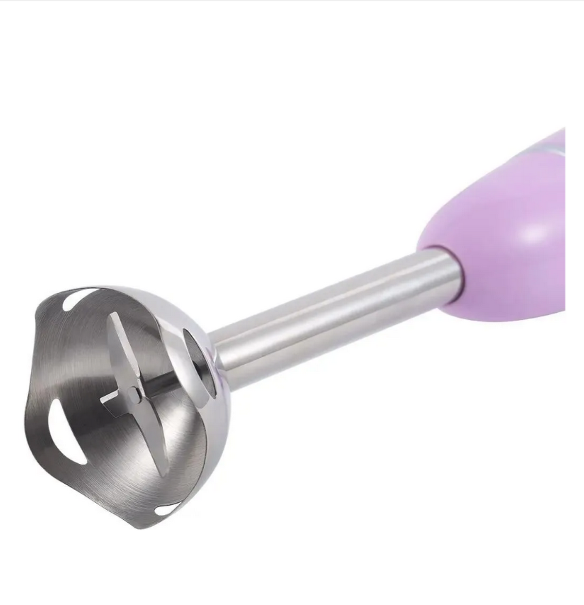 Мощность устройства 800 Вт. Он оснащен 2 скоростями работы и режимом турбо. Скорость вращения до 15000 об/мин. Погружная часть выполнена из нержавеющей стали. Блендер оснащен острым многофункциональным ножом для измельчения и смешивания.