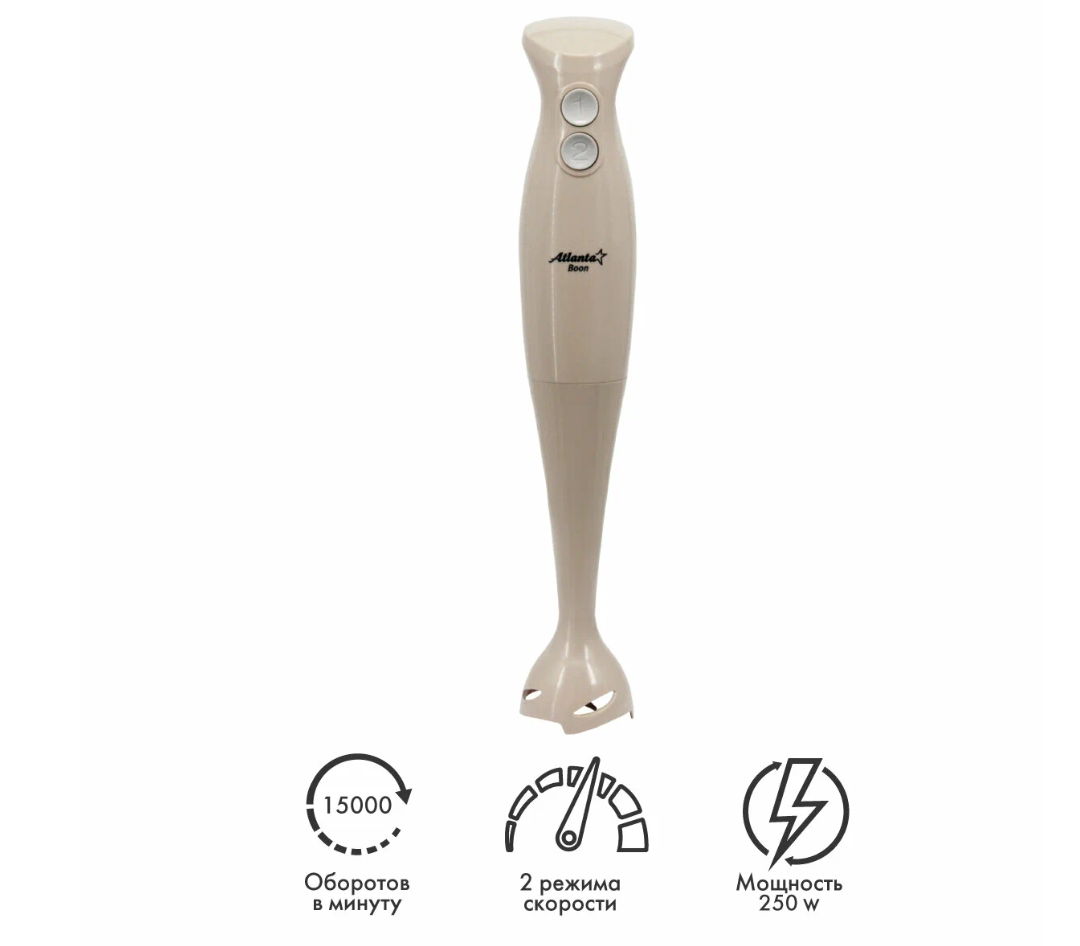 Погружной блендер Atlanta ATH-3144 позволяет быстро и качественно: измельчить орехи, травы, сыр, приготовить горячее пюре прямо в кастрюле (50 С), смешать коктейль или детское питание. Высоко оборотистые двигатели данной модели позволяют свести время работы до нескольких секунд и полностью соответствуют европейским нормам безопасности.