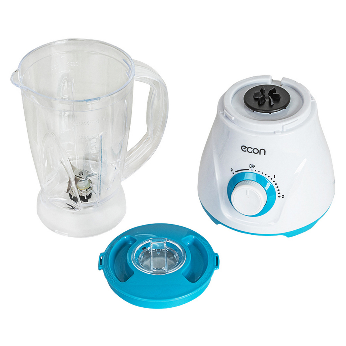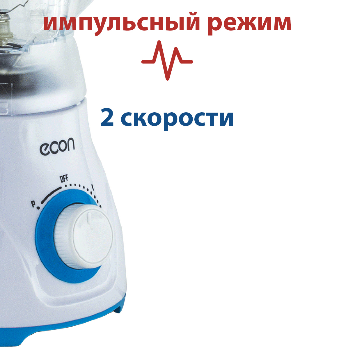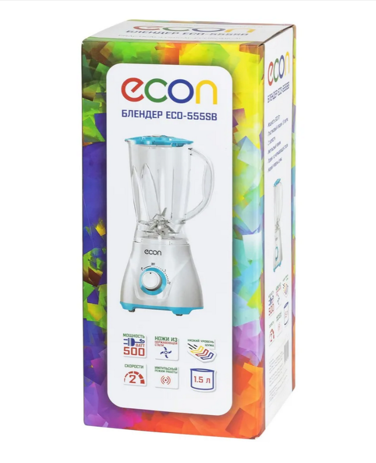 Блендер econ ECO-555SB бело-голубого цвета представляет собой компактное и производительное устройство, с помощью которого вы сможете быстро взбить, перемолоть, смешать необходимые продукты. Корпус и чаша блендера сделаны из высококачественного пищевого пластика. Прорезиненные ножки устройства делают блендер устойчивым на кухонной столешнице. Ножи из нержавеющей стали обеспечивают быстрое измельчение ингредиентов до нужной консистенции.