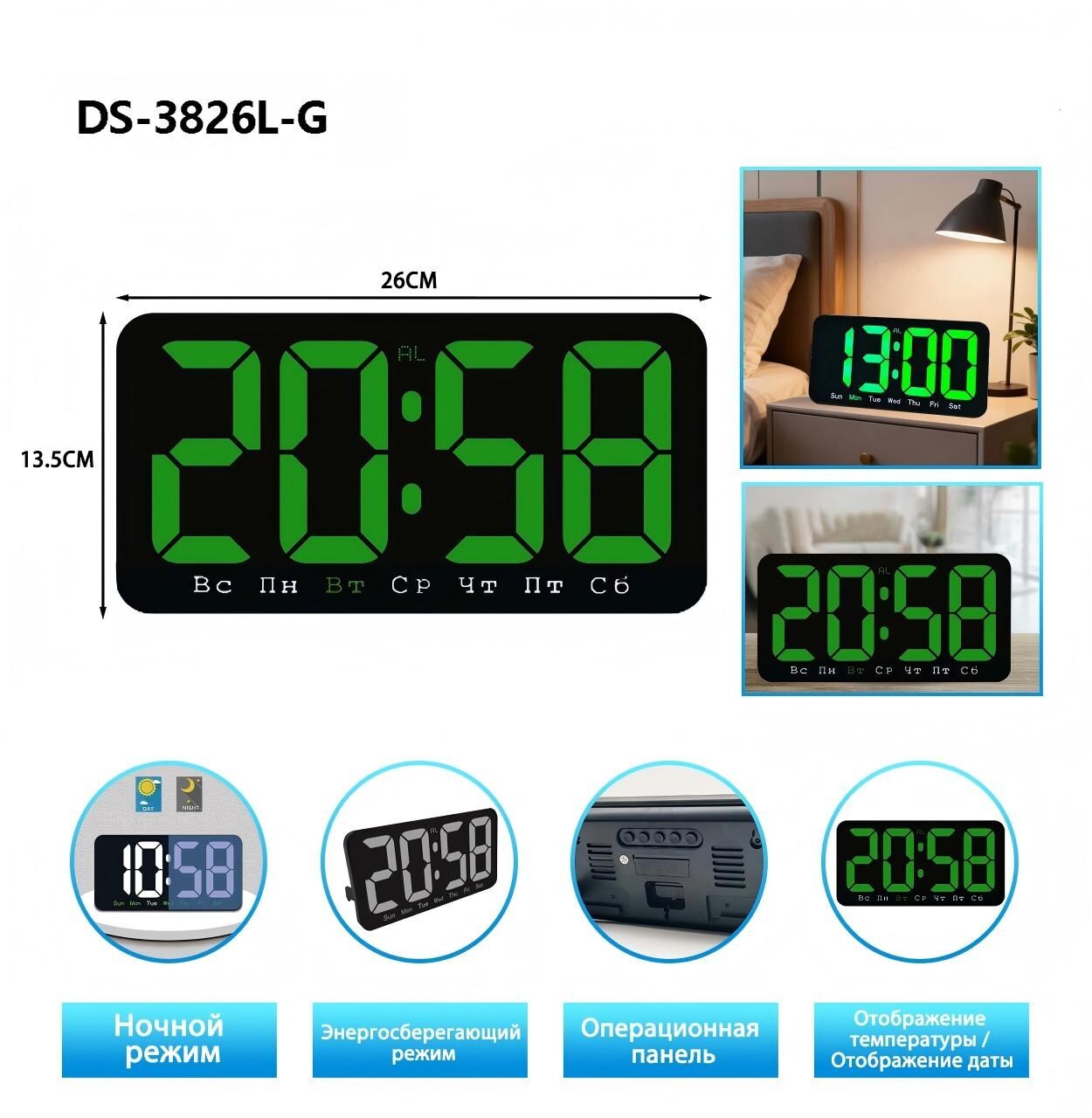 Электронные светодиодные часы Gaosiio 3826L: функциональность и надёжность в современном дизайне.