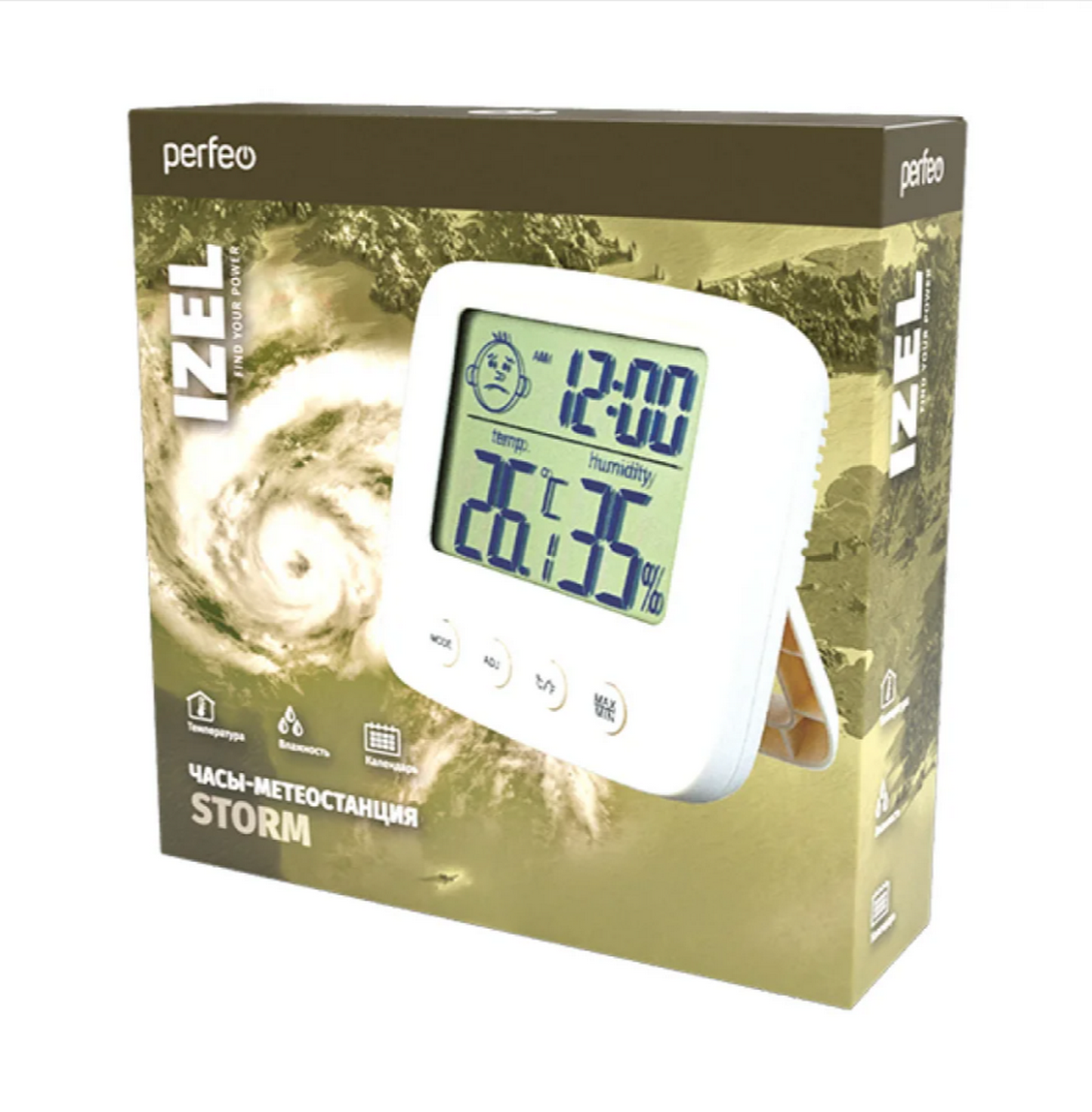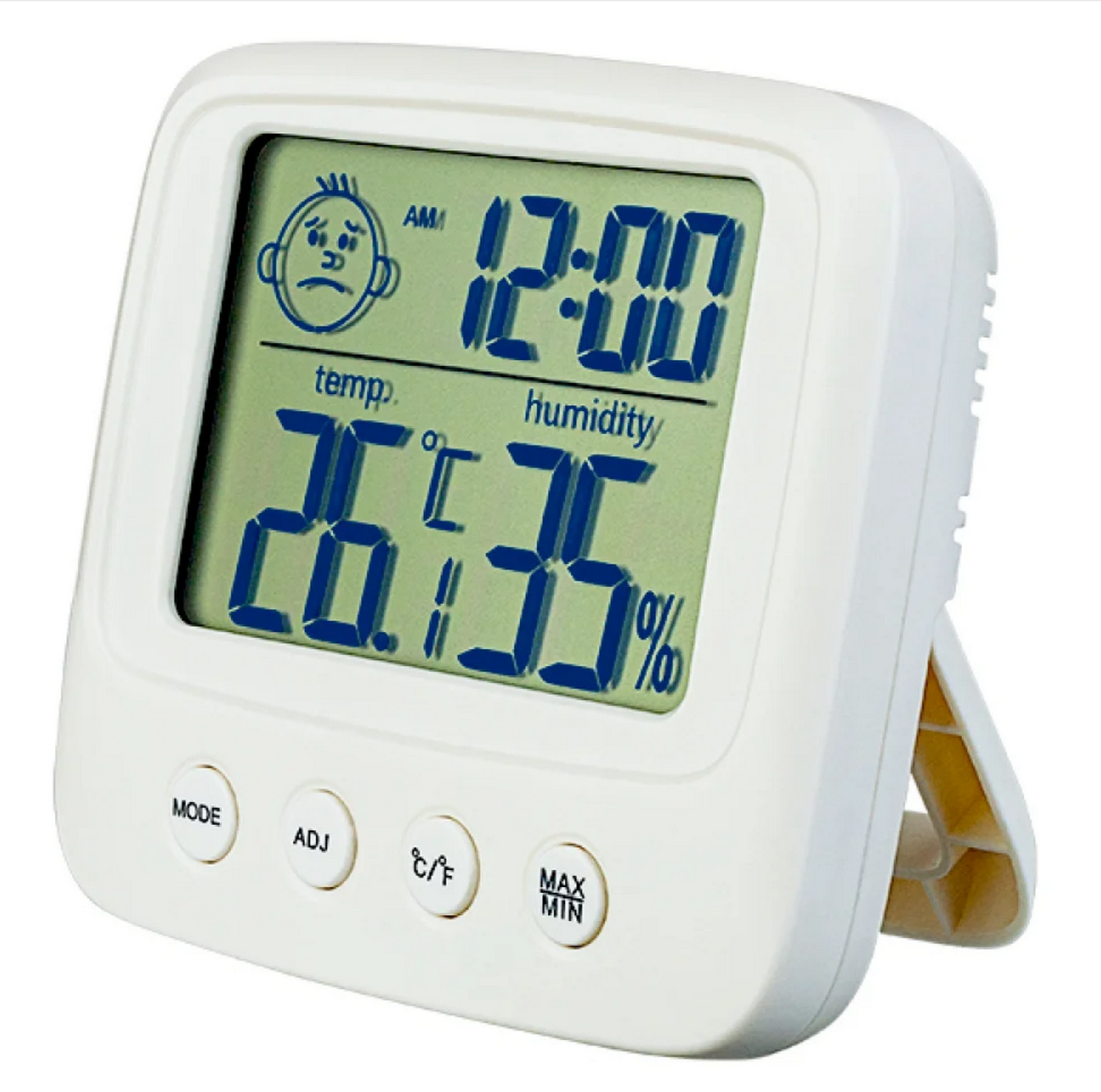 Часы-метеостанцию вы можете как поставить на стол, так и закрепить на стену. Цифровой дисплей одновременно отображает не только влажность воздуха и температуру внутри помещения, но также время. Устройство имеет несложное кнопочное управление и низкое энергопотребление (двух батареек ААА хватит на несколько месяцев).