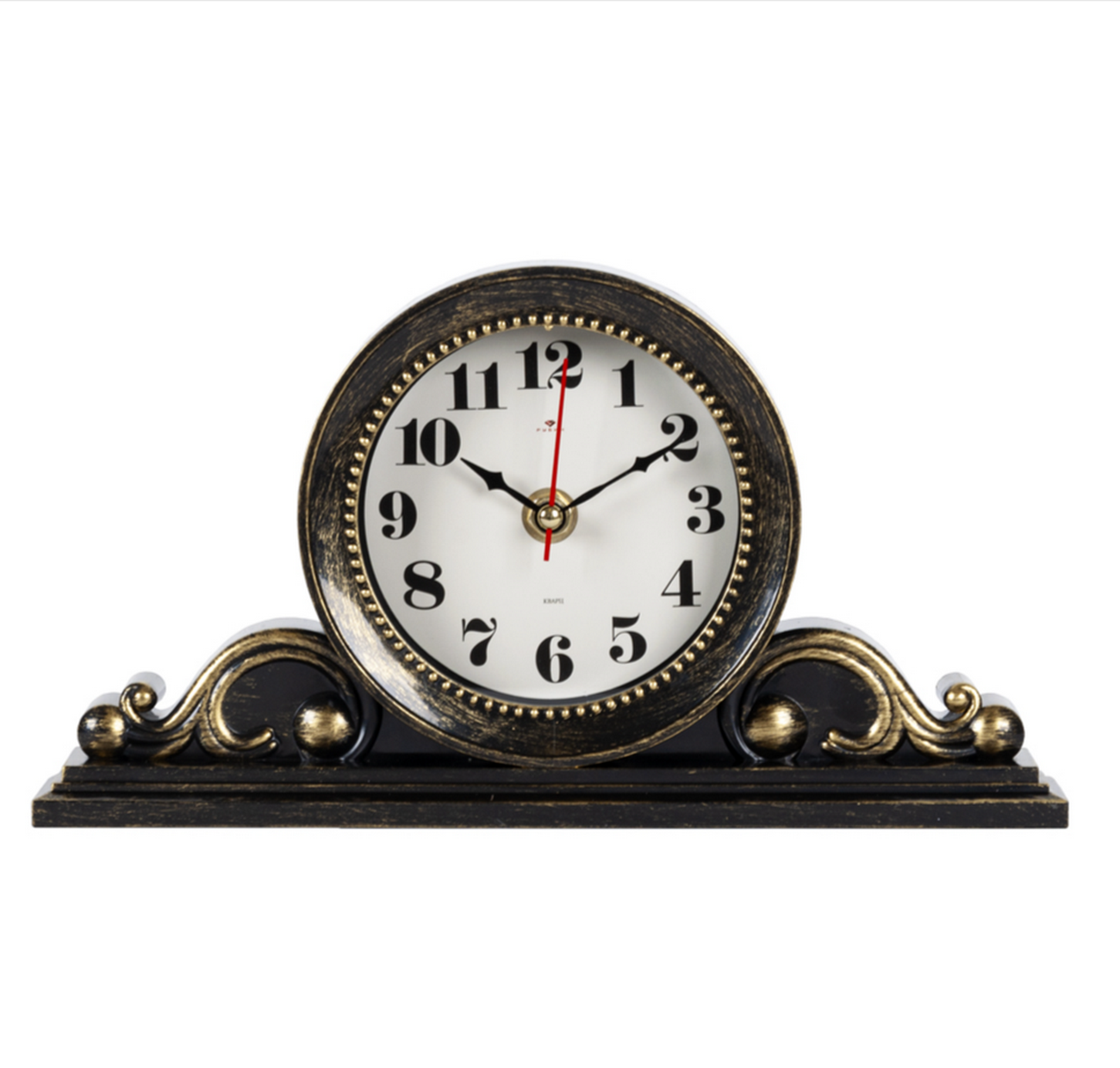 ЧАСЫ НАСТОЛЬНЫЕ 26Х14 СМ, КОРПУС ЧЕРНЫЙ С ЗОЛОТОМ "КЛАССИКА".