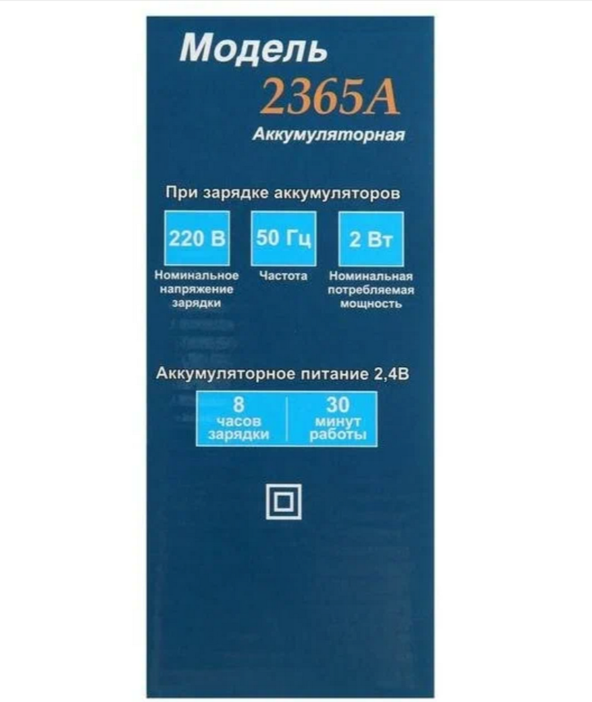 Питание от встроенных аккумуляторов: 2.4 В.