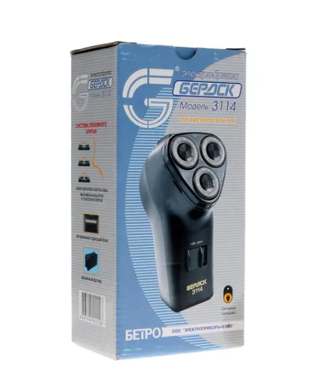 Электрическая Бритва Бердск 3114 Кол-во оборотов двигателя в мин. от 3500 до 3700. 3 бреющих головки. Мощный двигатель, идеальный д/бритья волос любой жесткости. Мощность 10 Ватт Работа от сети 220в. Самозатачивающиеся ножи. Встроенный стригущий блок д/правки усов, бороды и причёски. Мягкий футляр Комплектация: бритва-1шт. Щеточка для чистки. Сетевой шнур-1шт. Футляр-1шт. Упаковка