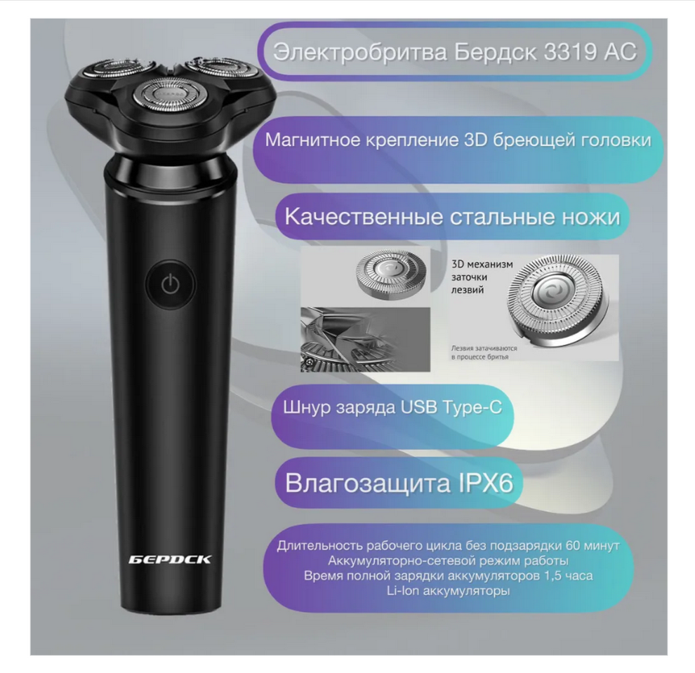 Электробритва Бердск-3319АС с магнитной крышкой.