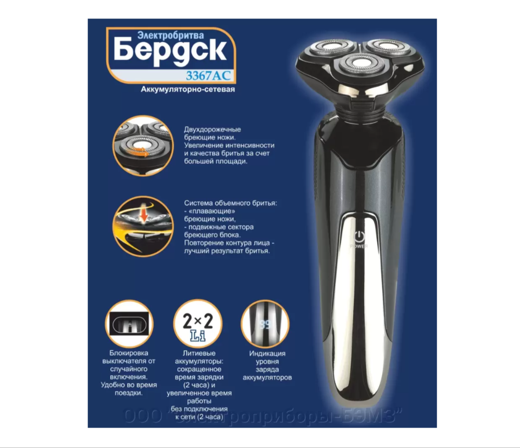 Мощность двигателя: 5 Вт. Тип бритвы: роторная. Источник питания: аккумулятор, сеть. Время автономной работы: 120 мин. Способ бритья: сухое.