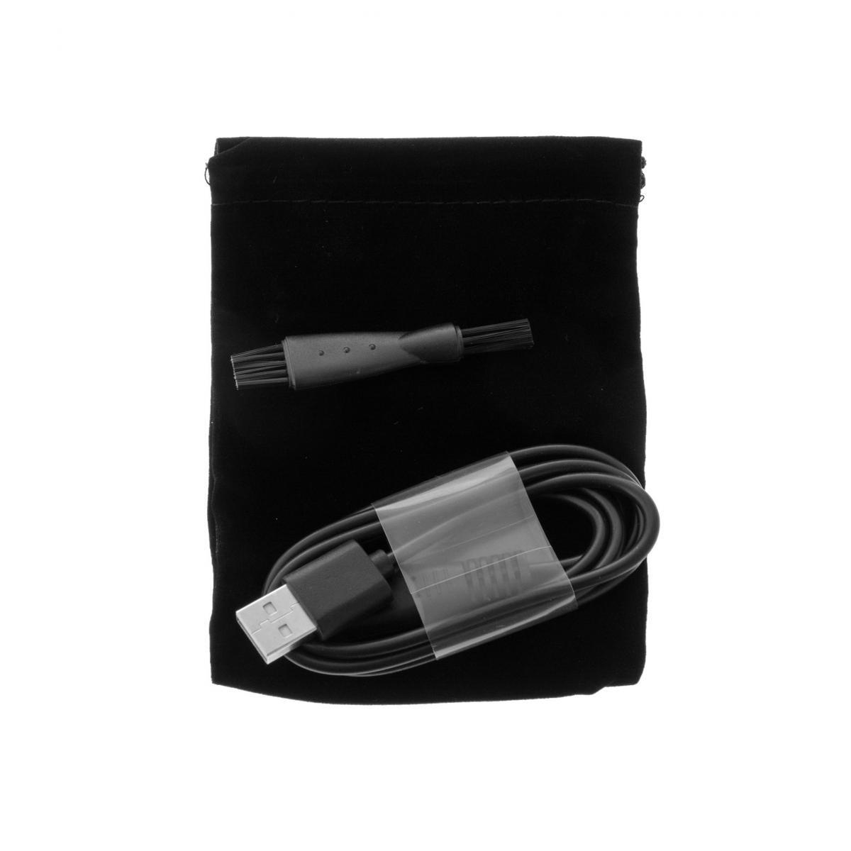 Комплектация: Бритва. Щеточка. Кабель для зарядки. Дорожная сумочка. Руководство. Упаковка.