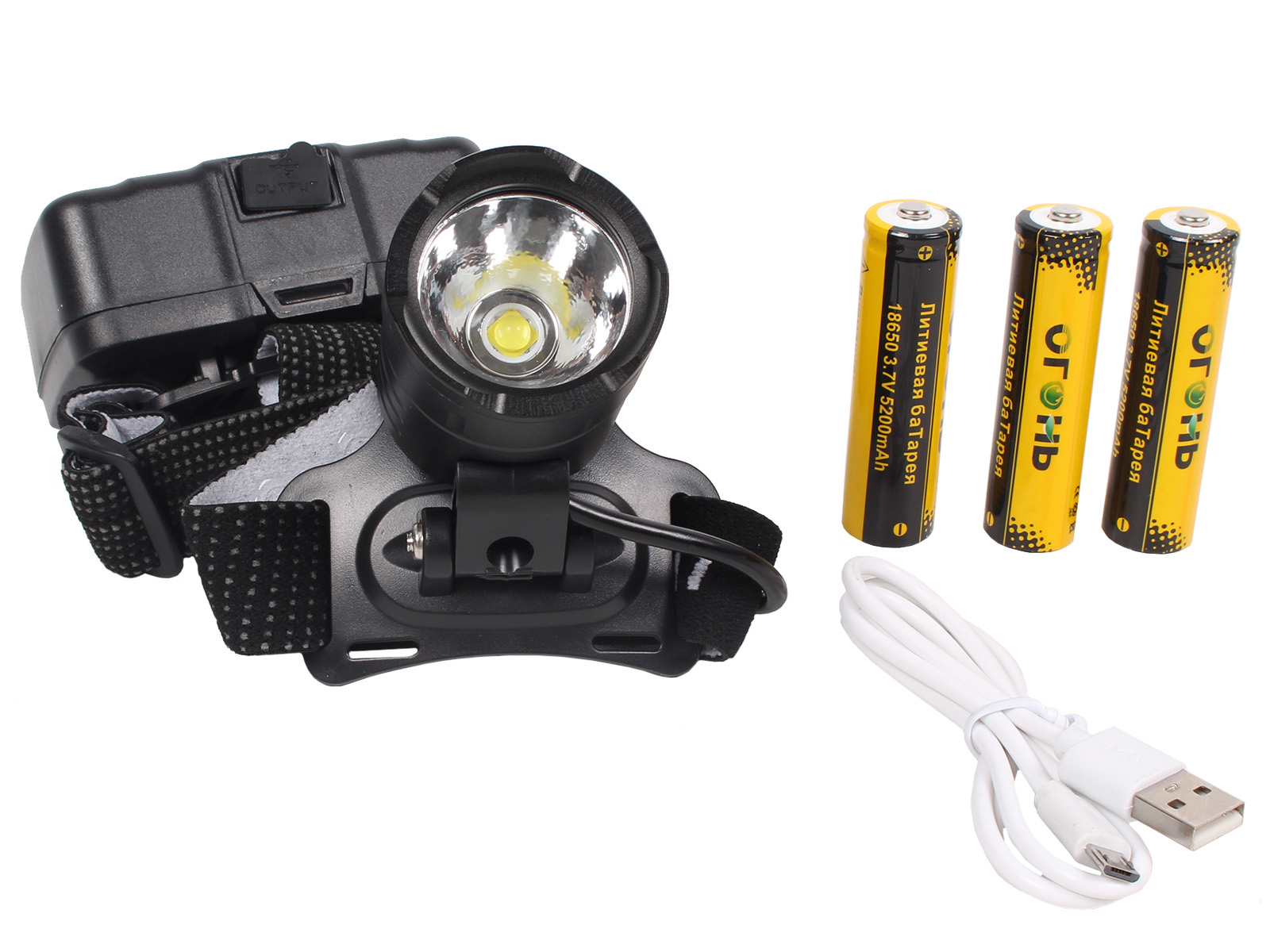 Регулируемый угол наклона до 60° и мягкий эластичный ремешок с противоскользящими вставками гарантируют комфортную посадку и точную фокусировку луча. Питание от 3-х аккумуляторов (в комплекте), зарядка через USB‑порт (кабель в комплекте).