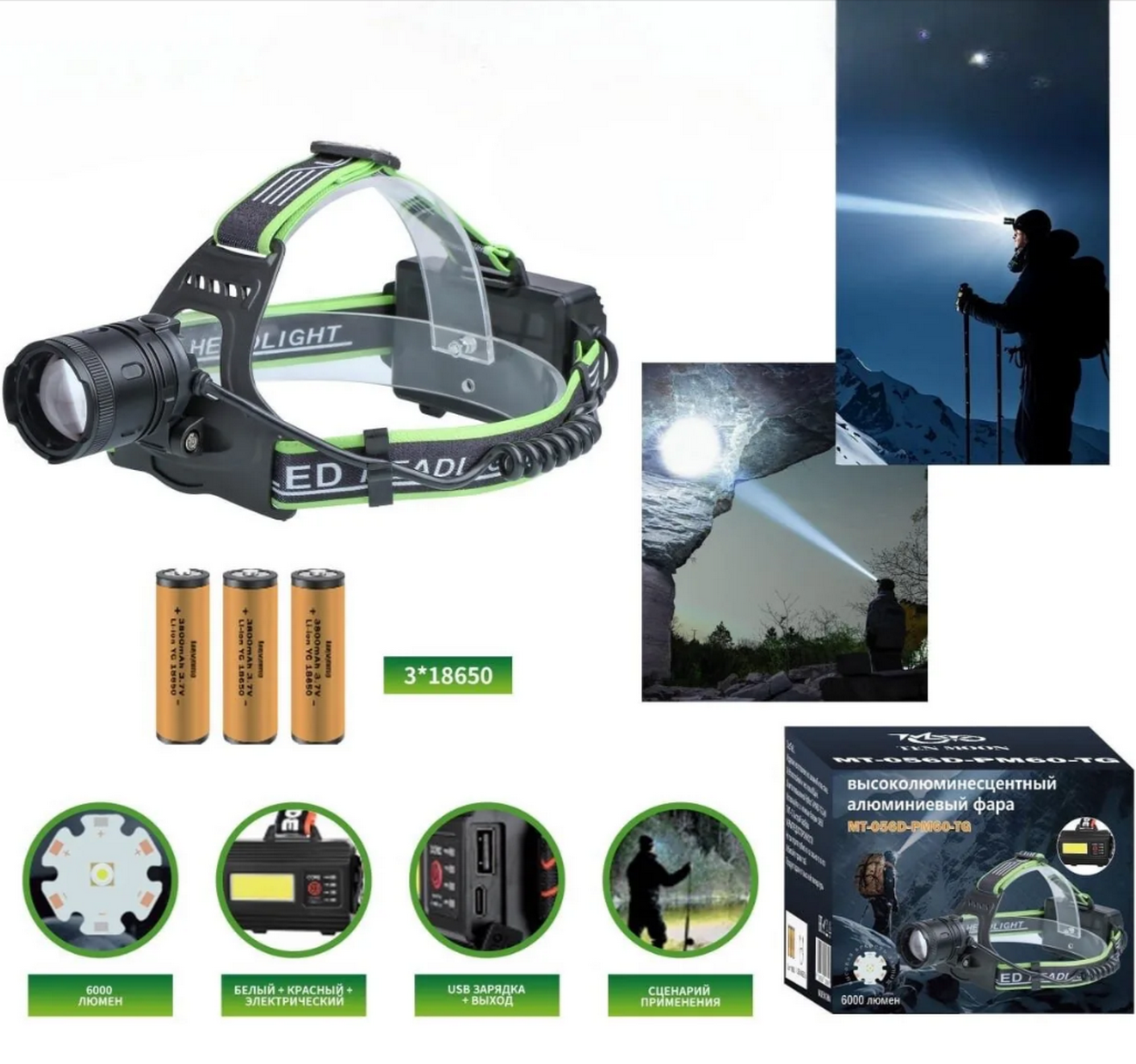 Фонарь налобный многофункциональный «Огонь» MT‑056D — надёжный источник яркого света для туризма, походов, рыбалки, ремонтных работ и экстренных ситуаций. Оснащён мощным светодиодом PM60, обеспечивающим интенсивный световой поток с несколькими режимами. Имеет регулируемую наклонную головку для точного направления света и эргономичный ремешок с мягкой подкладкой для комфортной фиксации на голове. Питание от аккумуляторов типоразмера 18650 (в комплекте). Корпус выполнен из ударопрочного алюминиевого сплава, защищён от влаги и пыли по стандарту IP54, выдерживает эксплуатацию в сложных погодных условиях. Компактный, лёгкий и удобный в использовании — идеальный выбор для активного отдыха и профессиональной деятельности.