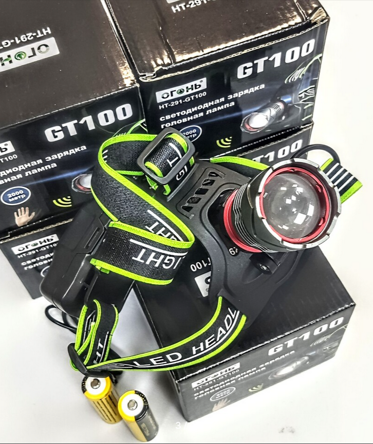 Налобный фонарь Огонь — мощный осветительный прибор с дальностью свечения до 2 000 м и световым потоком 1 980 люмен. Оснащён современным светодиодом GT‑100, обеспечивающим яркий нейтральный белый свет. Устройство удобно фиксируется на голове с помощью регулируемых ремешков, освобождая руки для любых задач. Фонарь поддерживает фокусировку (Zoom) для настройки ширины луча, имеет 3 режима работы и встроенный датчик движения для бесконтактного управления. Питание — от двух аккумуляторов 18650 (в комплекте), зарядка через кабель USB Type‑C. Корпус защищён по стандарту IP65 (от пыли и брызг), вес — 162 г. В комплект входят: фонарь, зарядный кабель, два аккумулятора 18650. Идеален для туризма, рыбалки, походов и работ в условиях низкой освещённости.