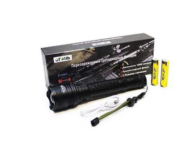 Топовый ручной светодиодный фонарь Огонь H-742-P70 оснащен новым светодиодом XH-P70 с рекордными показателями светимости. Ударопрочный корпус сделан из авиационного алюминия. Фонарь работает от двух аккумулятора типоразмера 18650..Стартовая комплектация ВСЕГДА снабжается сменными аккумуляторами 18650 небольшой емкости, поэтому если рассчитывать на максимальное время работы, следует рассмотреть покупку дополнительного комплекта аккумулляторов.