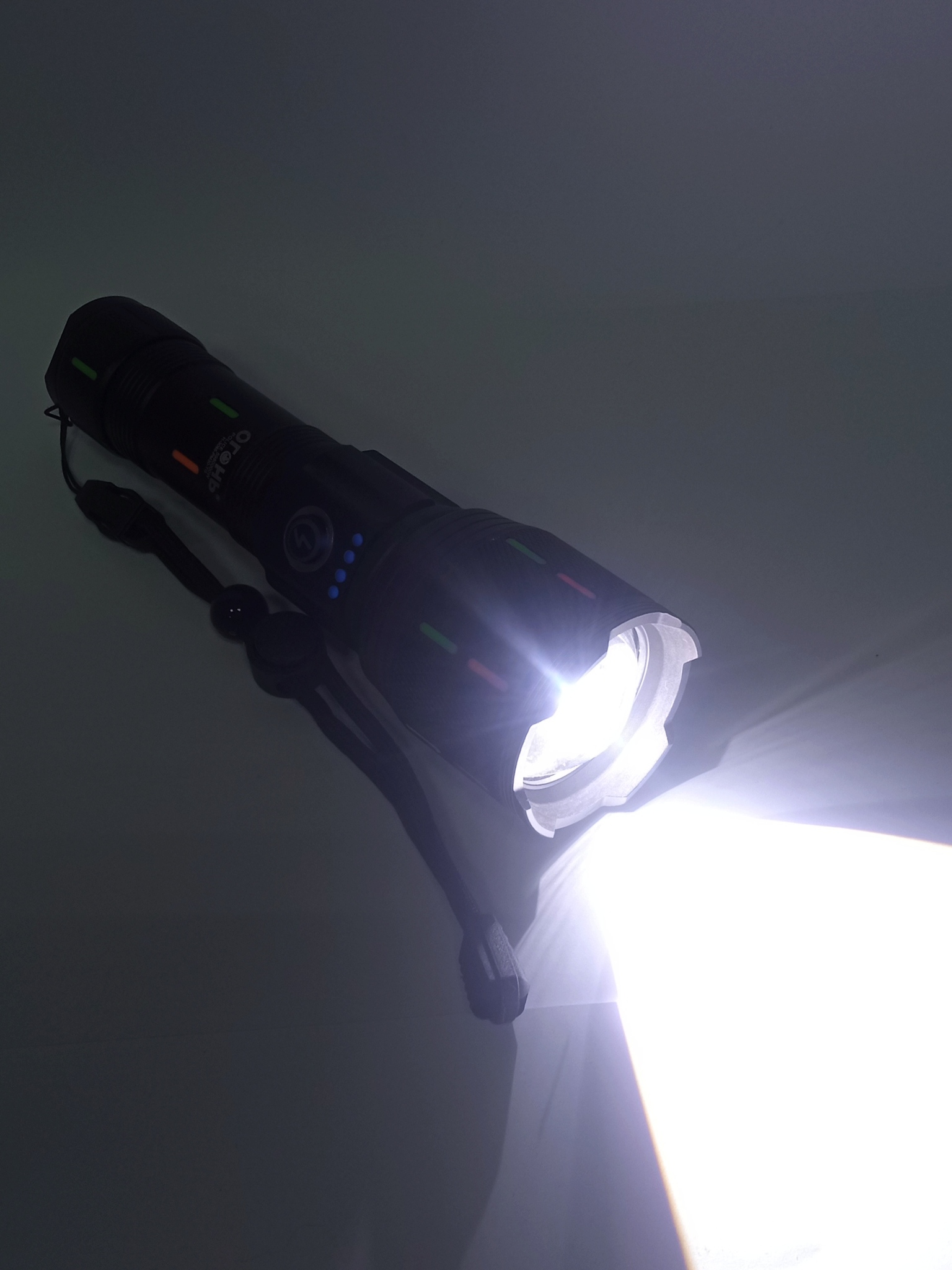 Огонь-3065-PM30-TG имеет 5 режимов работы, он входит в число самых ярких среди современных ручных фонарей. Длительное удержание кнопки включения позволяет изменять режимы свечения .Фонарь работает от одного Li-ion аккумулятора типоразмера 26650, также возможна работа от аккумулятора 18650 или от 3-х батареек R03/ААА. Заряжать аккумулятор устройства можно как от стандартных USB-блоков питания, так и от пауэрбанков. Зарядка осуществляется через встроенный в корпус фонаря Type-C разъём.