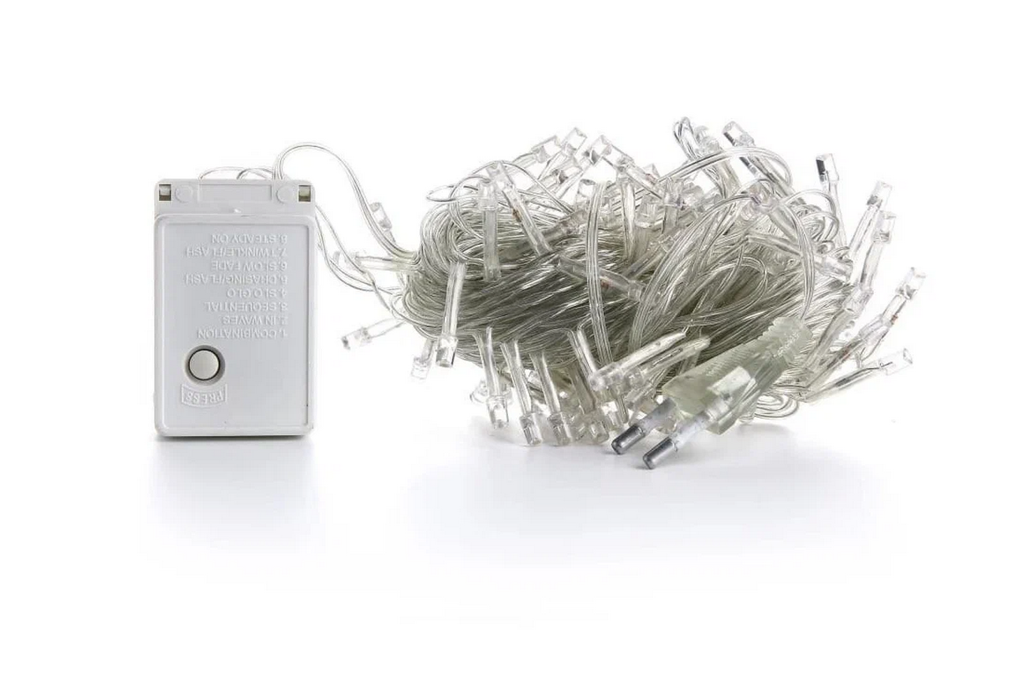 Изделие изготовлено из пластика. 500 LED/ 8 режимов свечения. Цвет провода прозрачный. Использовать только внутри помещения. Комплектация: Гирлянда нить 19м. Упаковка