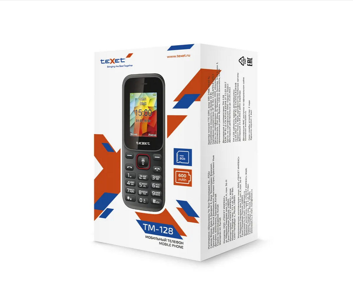 Модель ТМ-128 на первый взгляд очень проста, но тем не менее имеет более чем весомый перечень стандартны возможностей: цветной ЖК-дисплей размером 1,77 дюйма, поддержка двух SIM-карт, виброзвонок, встроенное FM-радио, аудио и видео плеер, яркий светодиодный фонарик, слот расширения microSD/SDHC (до 32 Гб).