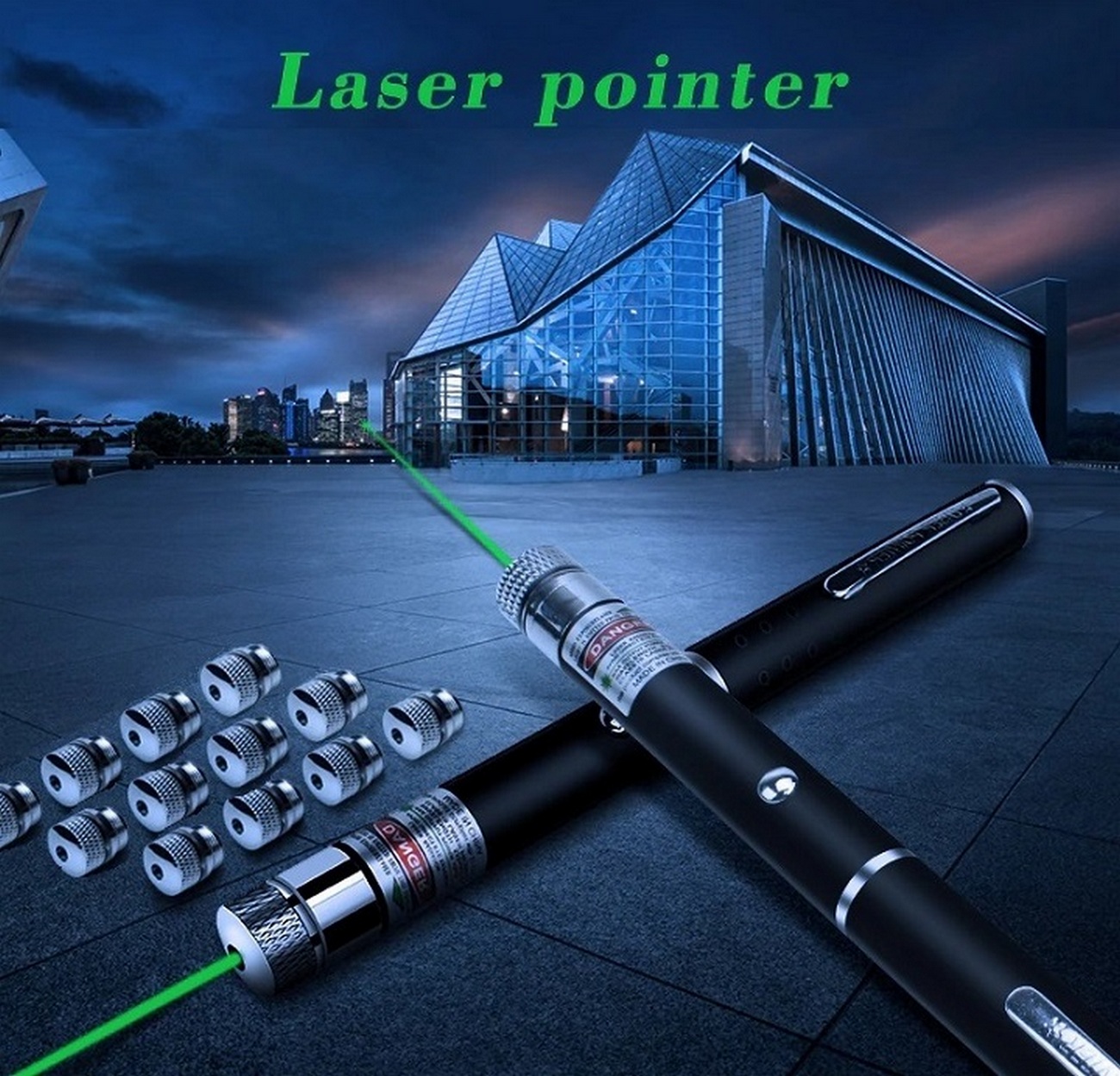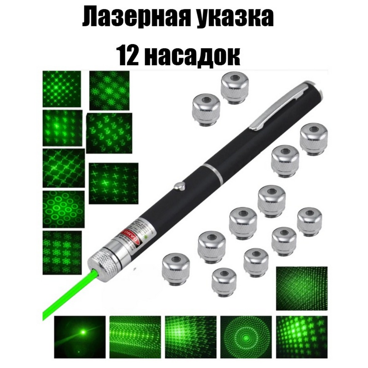 Лазерное устройство, которое излучает зеленый луч на расстояние 12 км. Он имеет мощность 100 mW, что означает, что он способен производить достаточно яркий и видимый луч. C лазерным устройством могут использоваться 12 насадок. Насадки различаются по своим целям и функциональностям. Например, они могут использоваться для создания различных вариантов луча или изменения его фокусного расстояния.