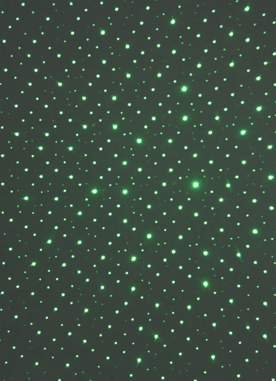 Имеет продолжительный срок службы до 5000 часов работы. В комплекте идет лазерная указка, аккумулятор, зарядное устройство и ключ блокировки. В комплекте также идёт специальная насадка для создания рассеивающего эффекта "звёздного неба" с разными режимами - тем самым, площадь свечения увеличивается на несколько десятков квадратных метров. Луч чётко видим в дыме или тумане. Видимость луча: до 10 км в ночное и дневное время. Работает от аккумулятора 3,7V.
