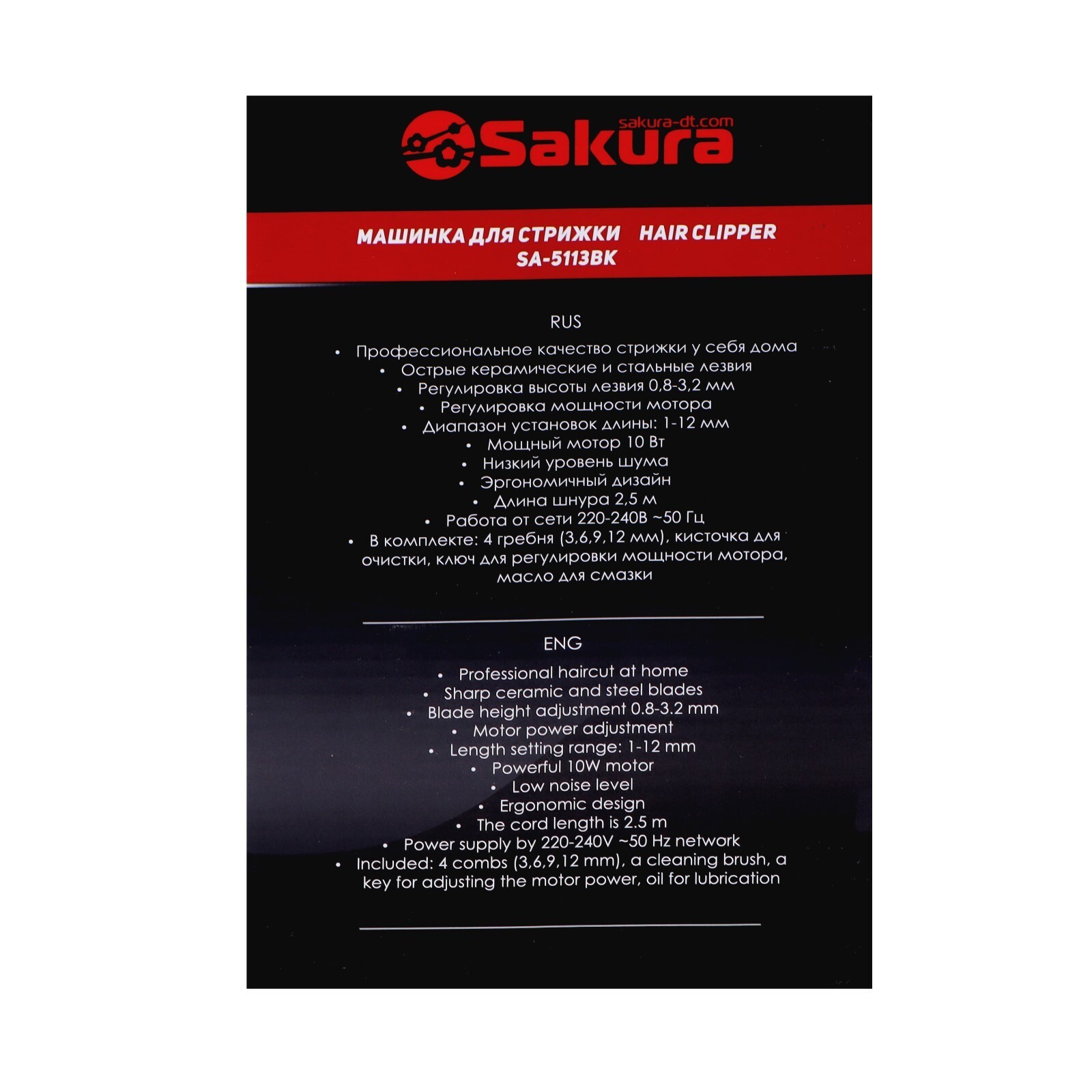 Машинка для стрижки Sakura SA-5113BK Profissional предназначена для ухода за волосами.