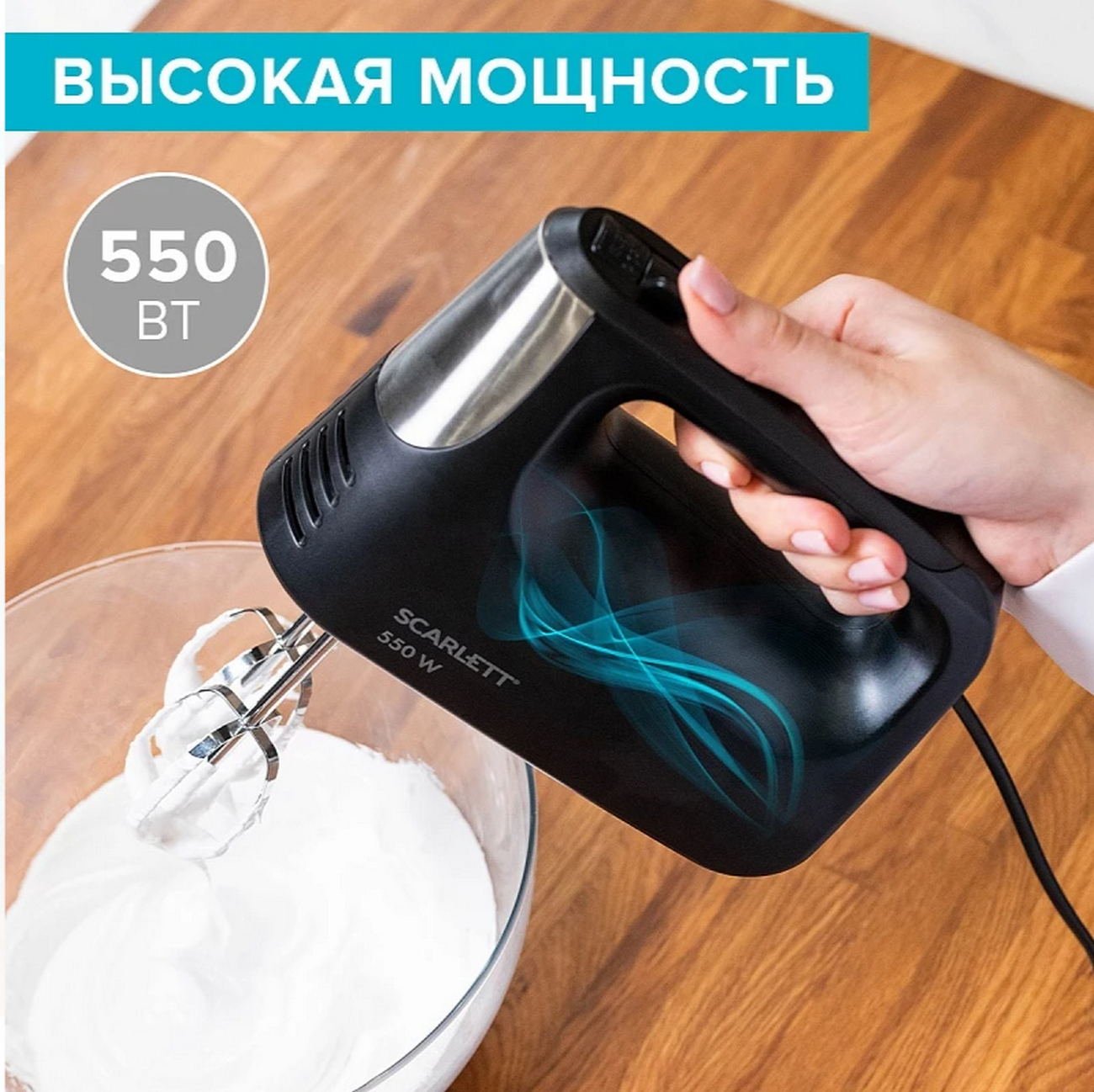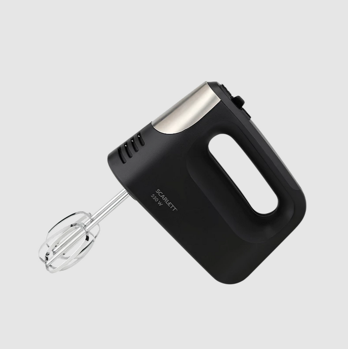Ручной миксер Scarlett SC-HM40S23 эффективно справится с замешиванием теста или приготовлением крема для торта. Миксер укомплектован 2 венчиками для взбивания сливок и яиц и 2 насадками-крюками для замешивания теста, которые можно хранить непосредственно на приборе, обеспечивая компактное хранение. Корпус миксера выполнен из высококачественного пластика. Переключатель скоростей в диапазоне от 1 до 5 и кнопка отсоединения насадок удобно расположены на ручке прибора. Дополнительный режим Turbo поможет справиться с более сложными задачами.