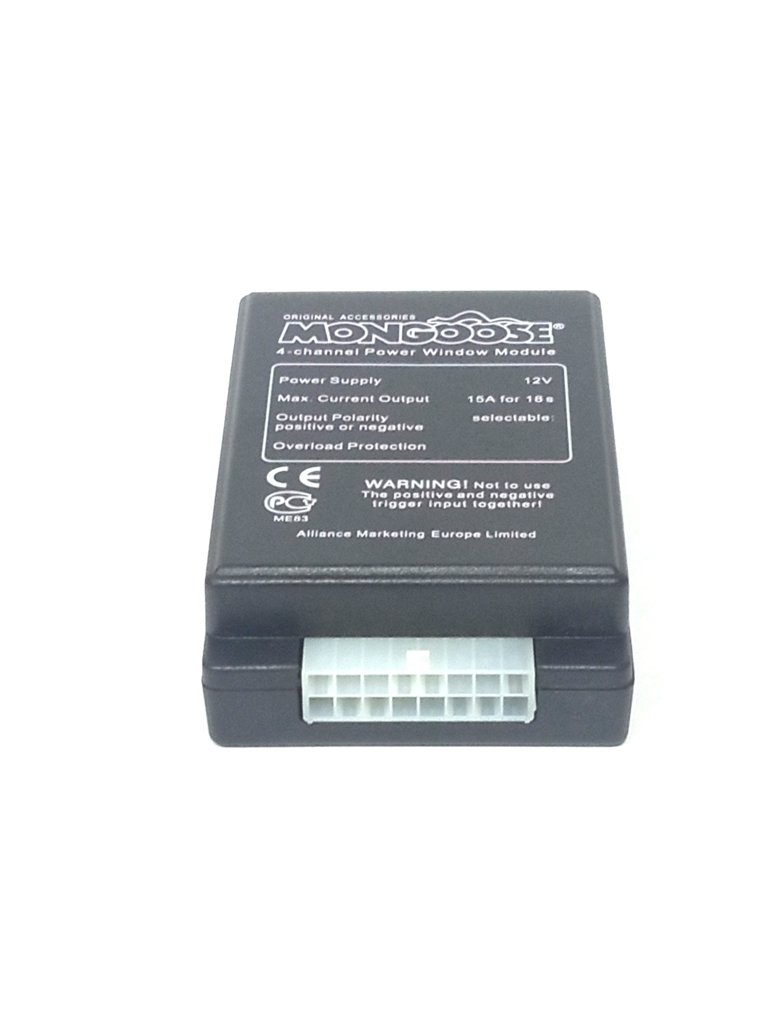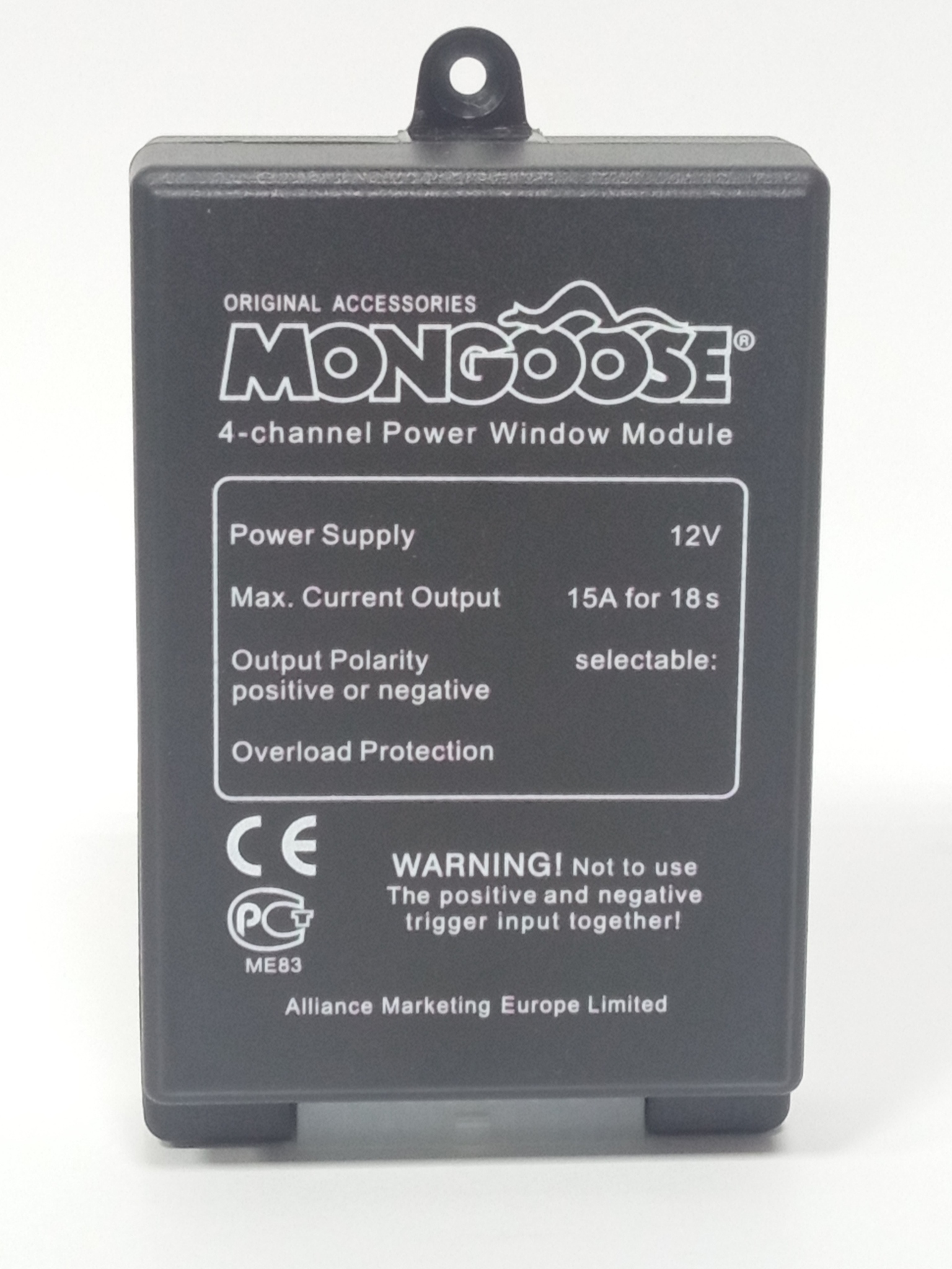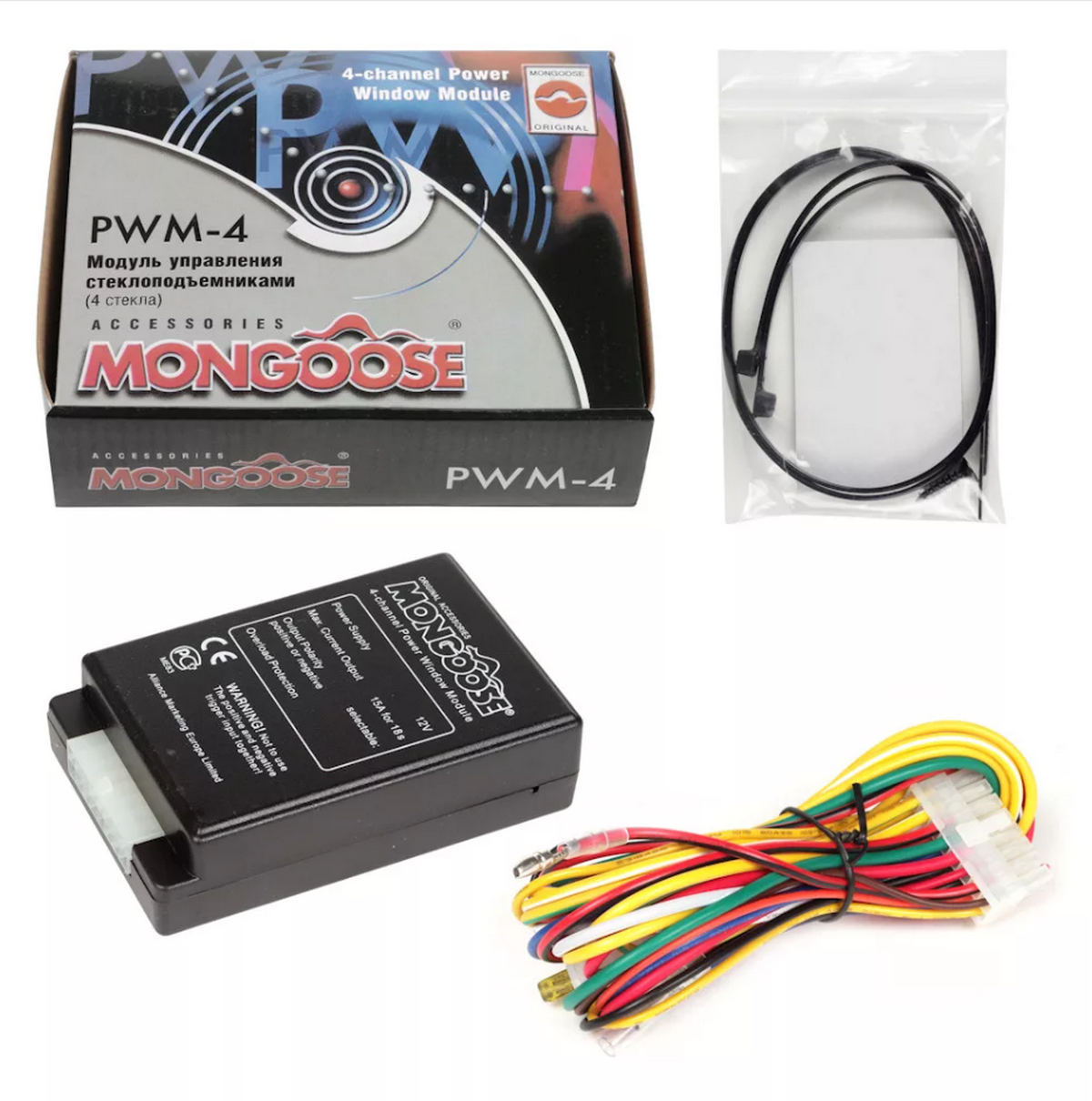 Модуль комфорта на четыре стекла Mongoose CWM-4 предназначен для совместной работы с автосигнализацией или другим устройством, имеющим специальный выход, на котором появляется импульс, отрицательной или положительной полярности, при изменении состояния системы (например, при постановке автомобиля на охрану).