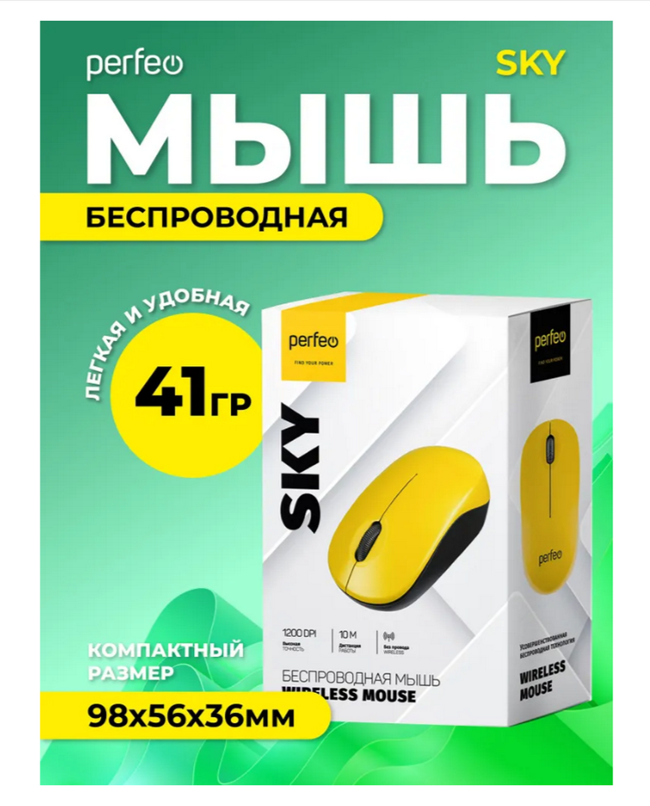 Беспроводная мышь Perfeo «SKY» с усовершенствованной беспроводной технологией (радиочастота 2,4 ГГц, радиус работы до 10 м). Высокоточный сенсор с разрешением 1200 DPI.