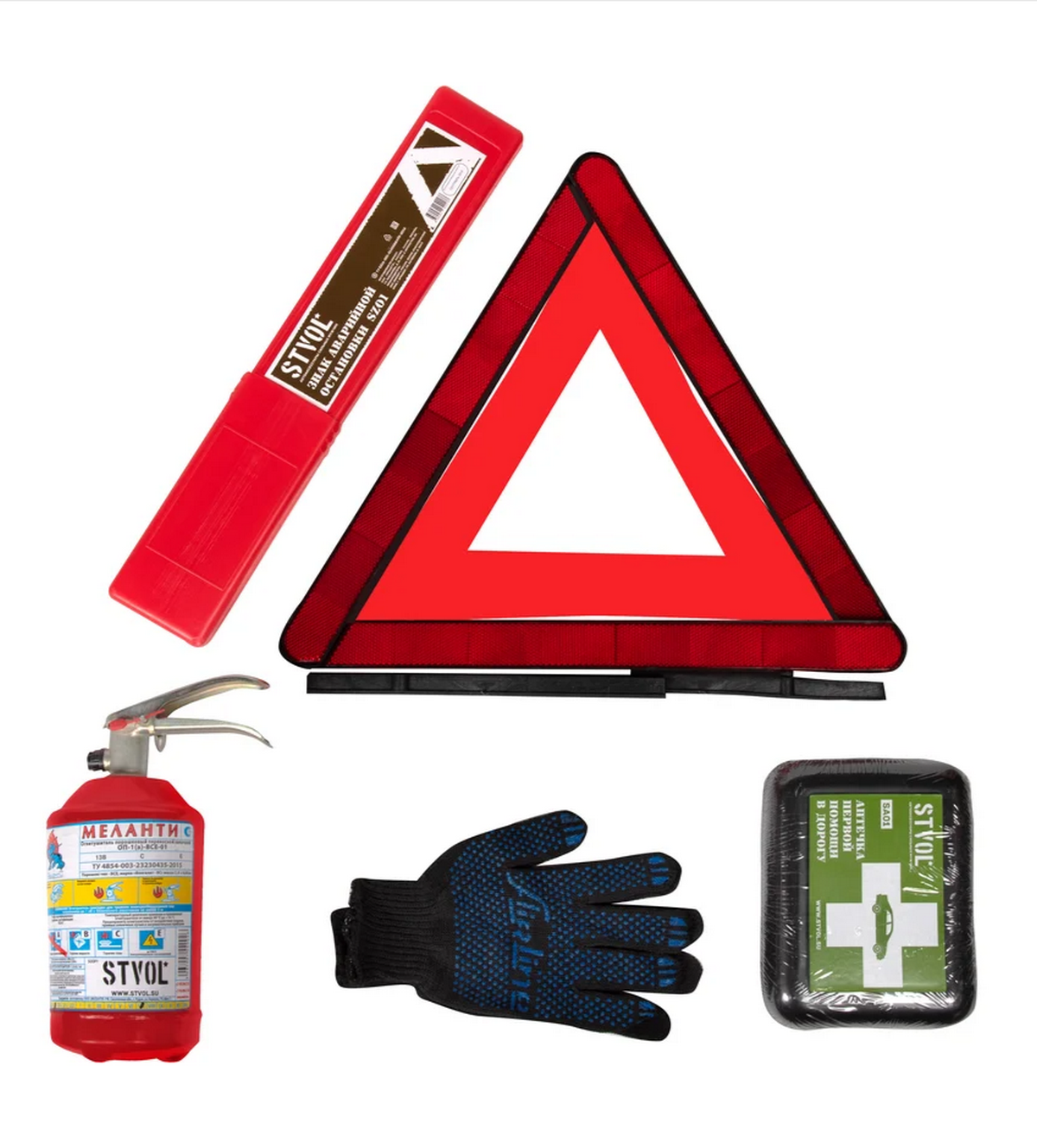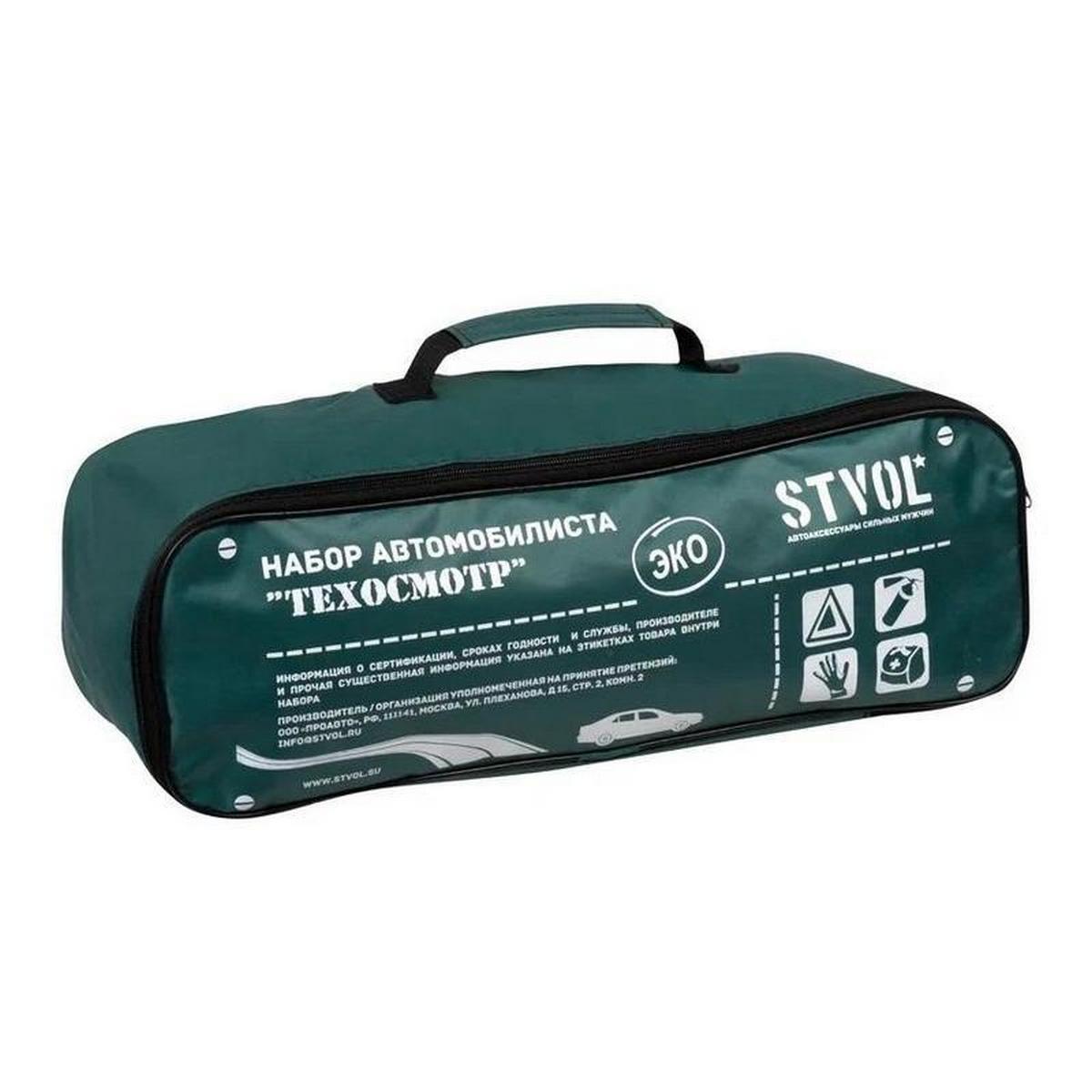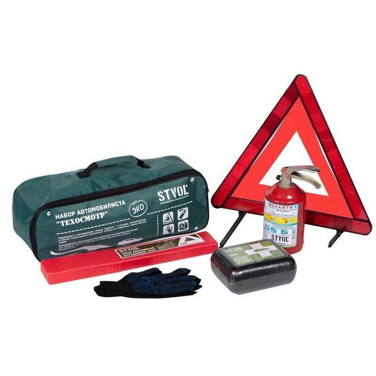 Набор автомобилиста Stvol Техосмотр ЭКО — это комплект из самых необходимых предметов в случае возникновения непредвиденных или аварийных ситуаций на дороге. Комплектация набора: знак аварийной остановки, аптечка первой помощи, огнетушитель.
