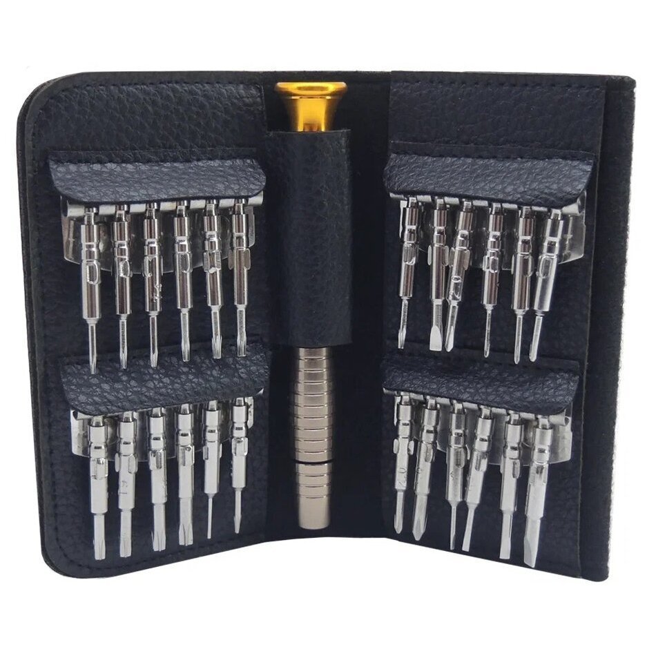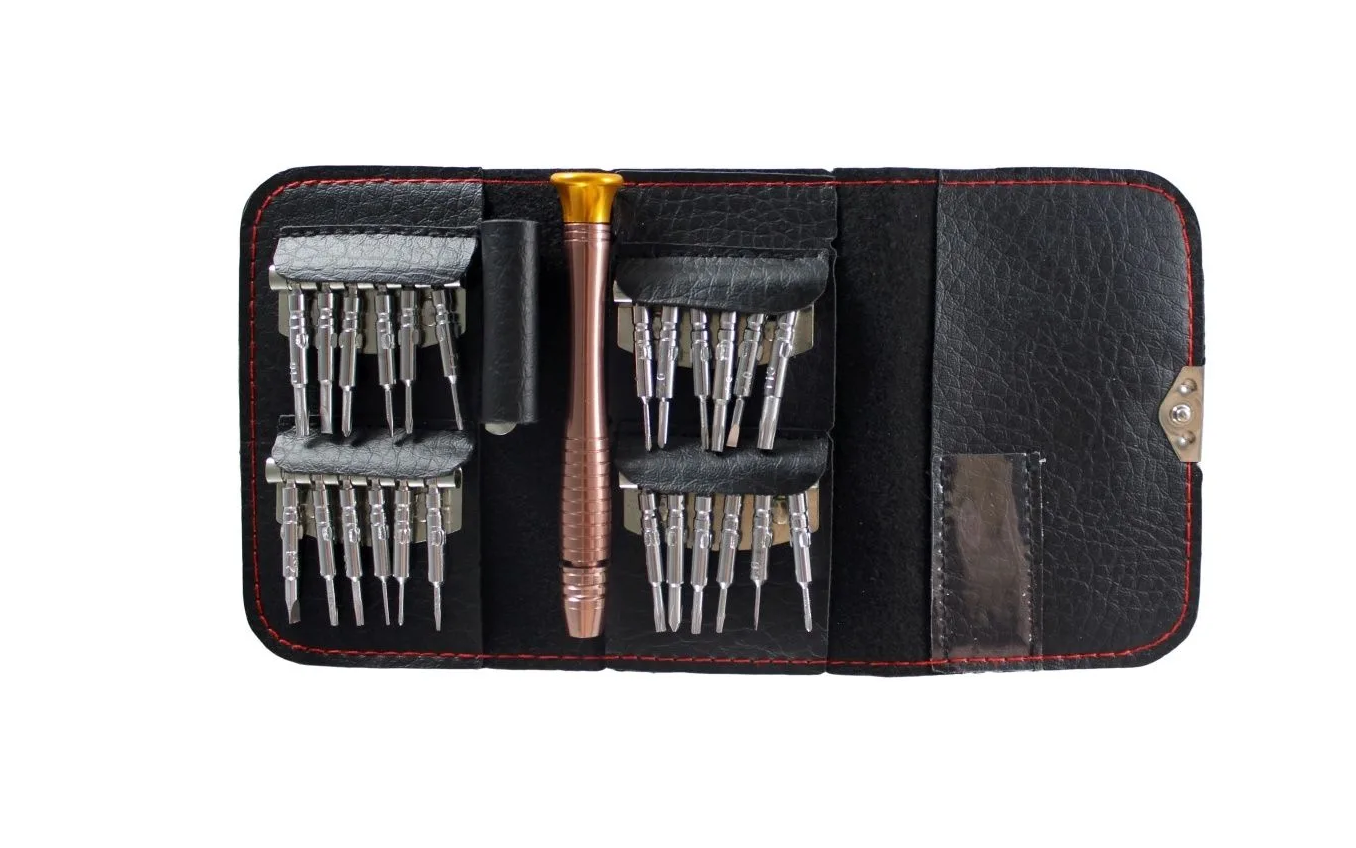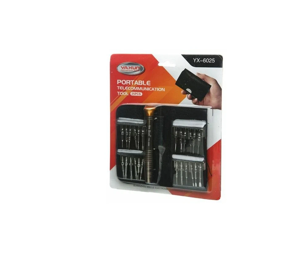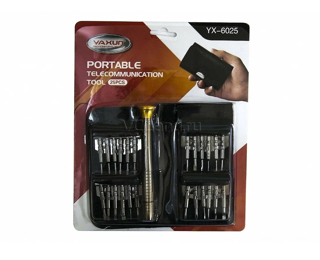 Набор отвёрток Ya Xun YX-6025 - представляет собой портативный набор отверток для ремонта мобильных устройств в удобном кожаном чехле. Имеет инновационную систему крепления насадок, которая позволяет быстро и удобно производить им замену.