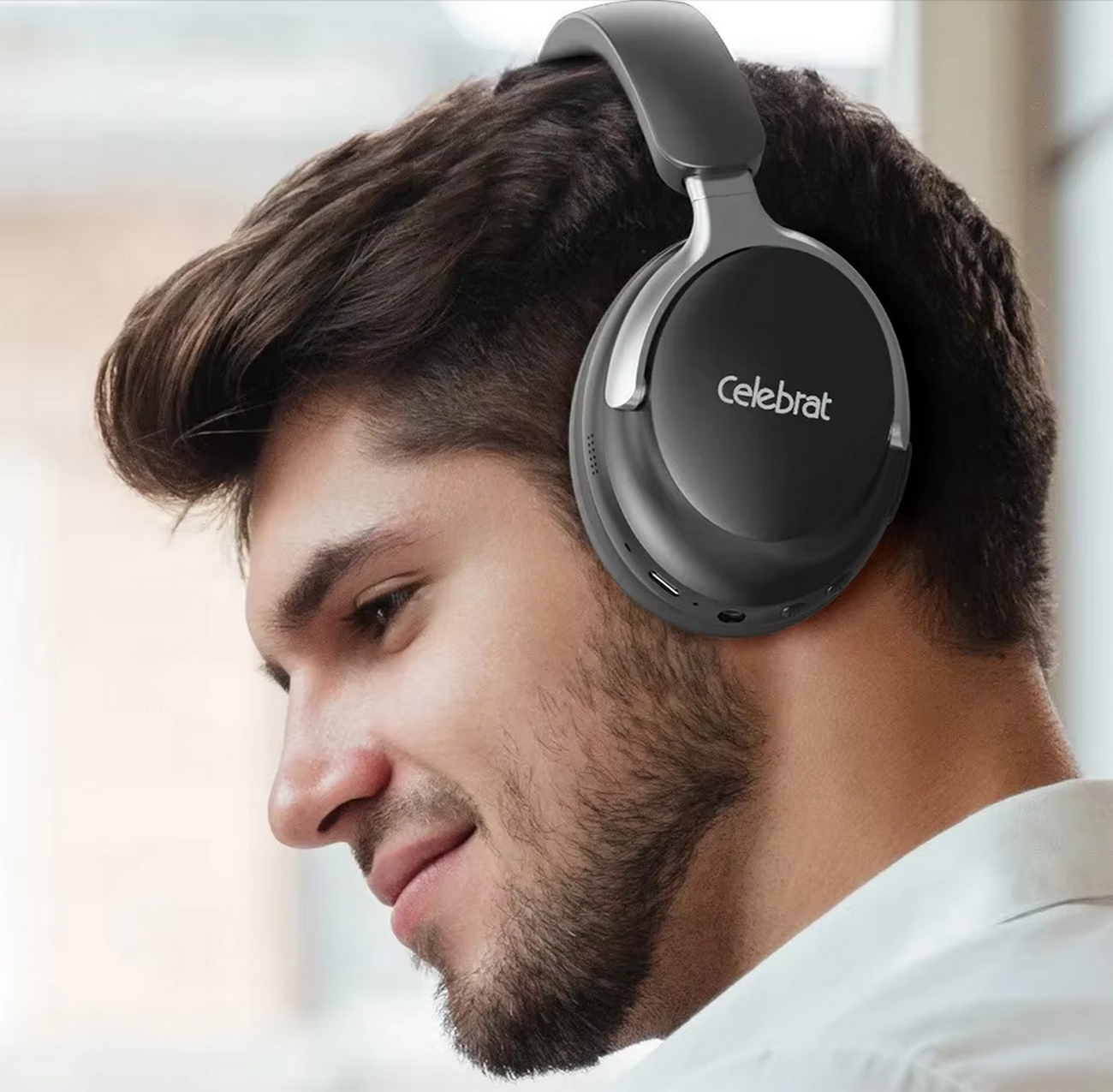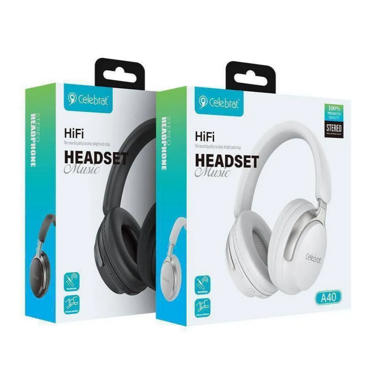 Наушники Celebrat A40 полноразмерные беспроводные Bluetooth-наушники, которые предлагают простое подключение (Bluetooth 5.3), 40-мм динамики, встроенный микрофон, до 8 часов работы от батареи и возможность подключения по AUX-кабелю.