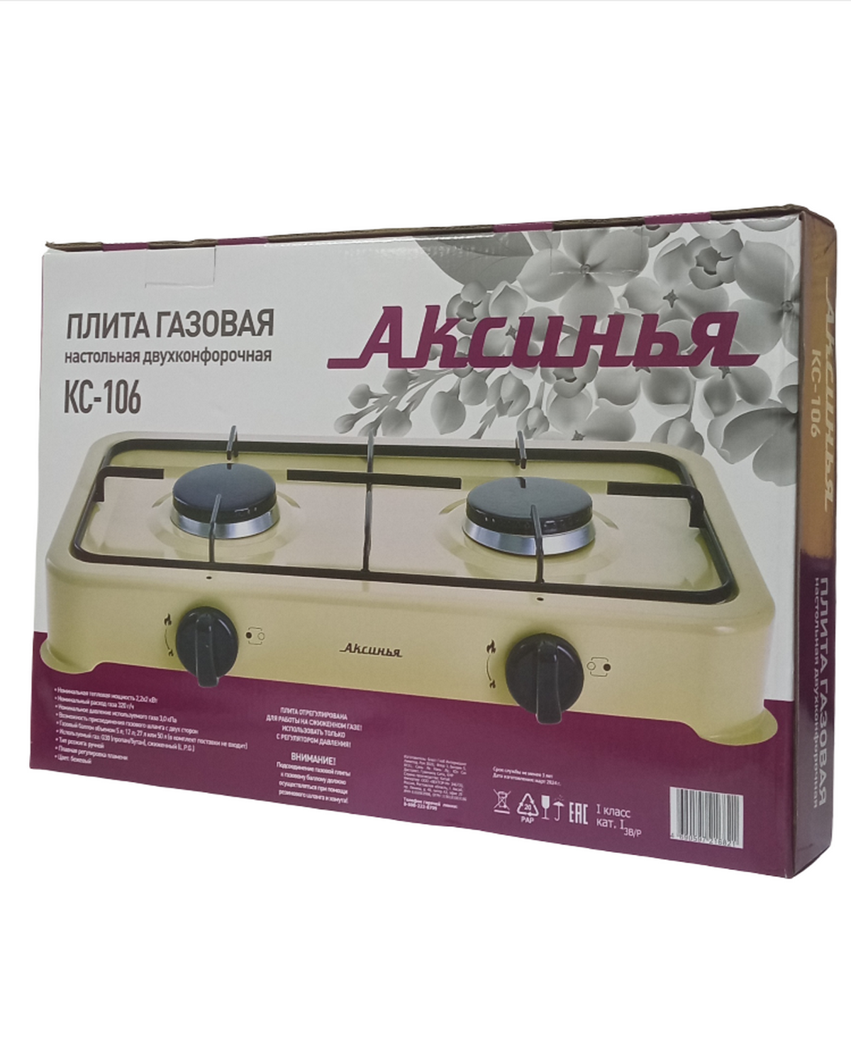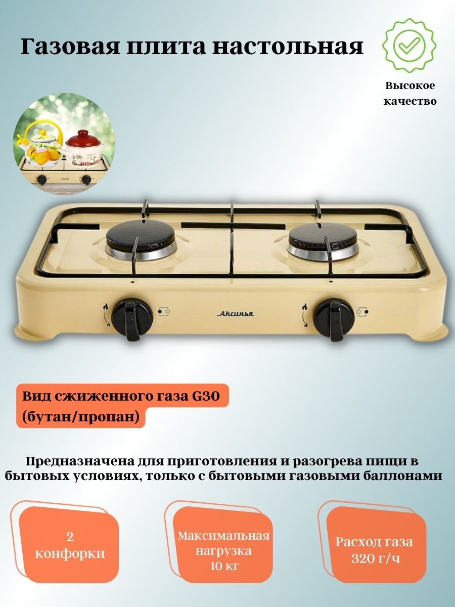 Газовая плитка АКСИНЬЯ КС-106 бежевая предназначена для приготовления и разогрева пищи в бытовых условиях, только с бытовыми газовыми баллонами, объемом 5л, 12л, 27л или 50л.