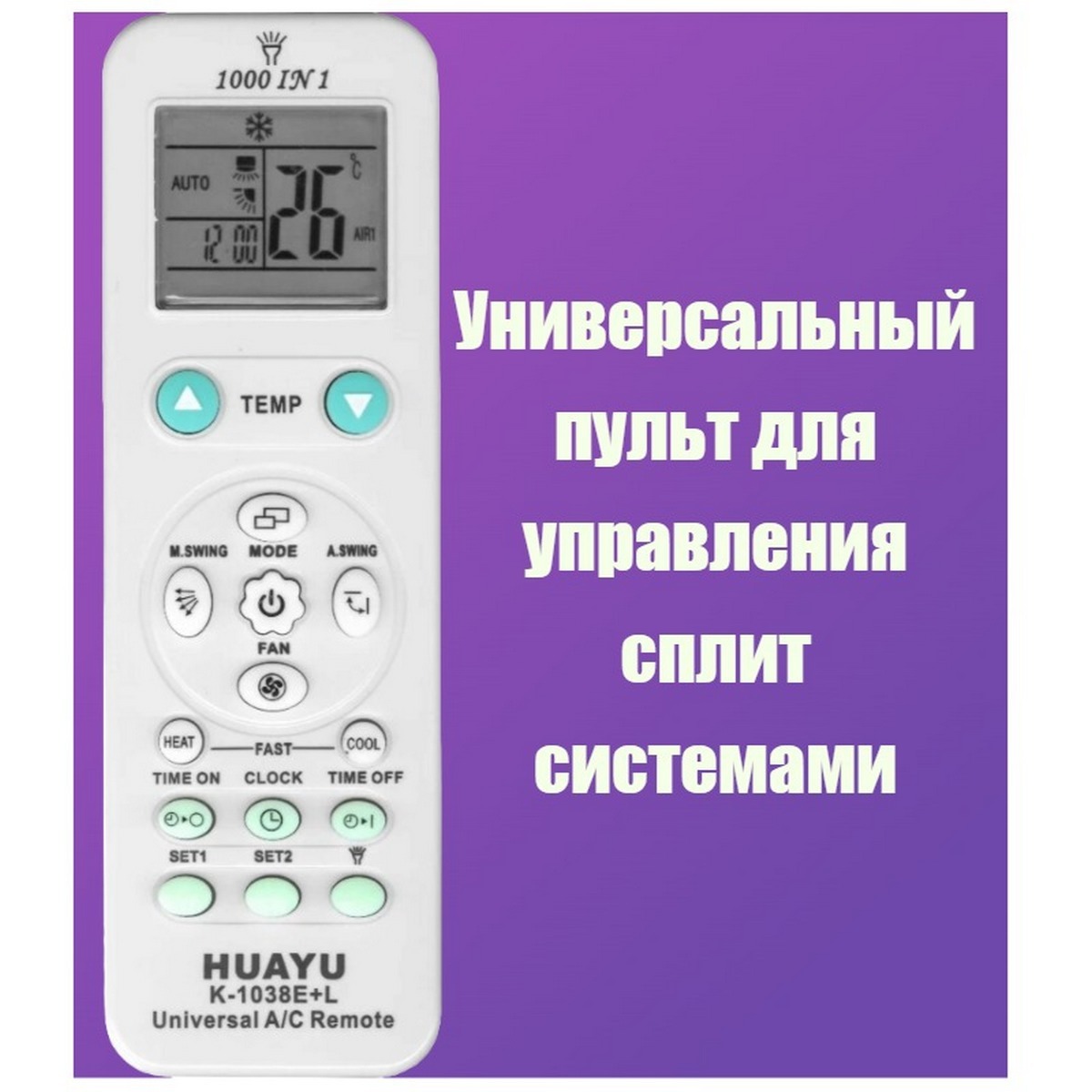 Пульт содержит в себе 1000 кодов и подходит для большинства кондиционеров поставляемых на наш рынок, даже если бренд не указан в таблице. Настройка пульта производится путем ввода или автопоиска кода, подробная инструкция на русском языке в комплекте.