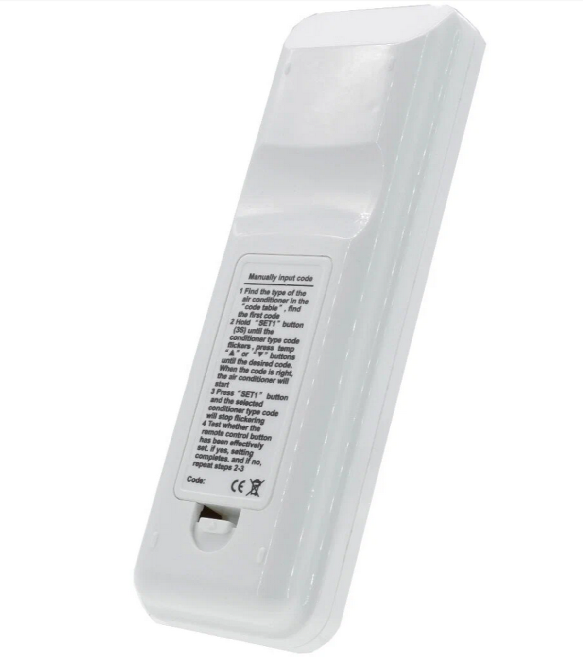 Универсальный пульт для всех кондиционеров. Имеет таймер отключения/включения и встроенный светодиодный фонарик! Подойдет для любого кондиционера ранее управляемого с беспроводного пульта ДУ. Настройка с помощью ввода кода или автопоиском кода. В комплекте с пультом подробная инструкция на русском языке и таблица кодов. Подходит для брендов: Gree, Haier, Midea, TCL, AUX, Hisense, Samsung, LG, Daikin, Panasonic, Sharp, Hitachi, Mitsubishi, Sanyo, Toshiba, Fujitsu, Carrier, Daewoo, Electrolux, Whirlpool, Ballu, Fun