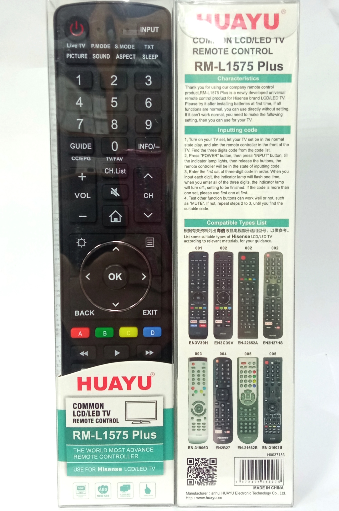 Универсальный телевизионный пульт дистанционного управления HUAYU RM-L1575 PLUS для телевизоров HISENSE! Пульт ДУ легко настроить с помощью ввода кода ( в инструкции с пультом ).