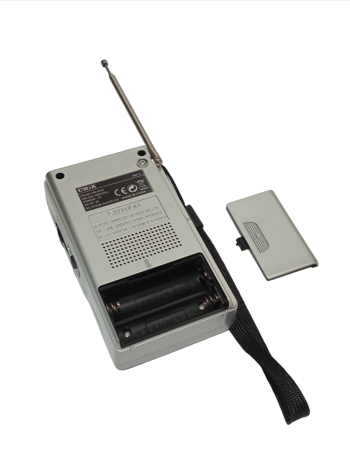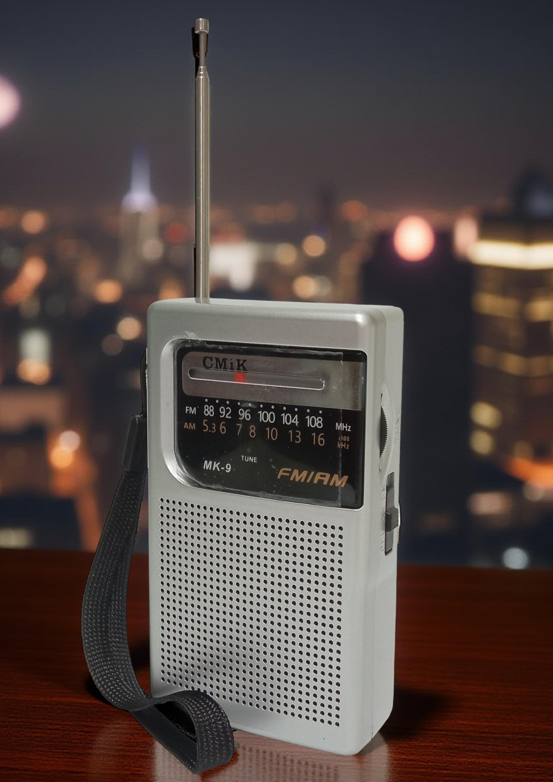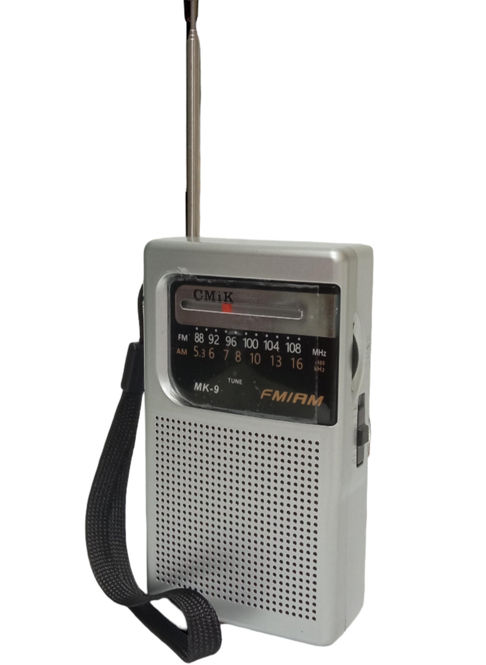 Карманный аккумуляторный радиоприёмник CmiK MK‑9 — компактное и удобное устройство для прослушивания радио в любом месте. Оснащён встроенным аккумулятором, обеспечивающим длительную автономную работу; поддерживает диапазоны FM и AM, гарантирует чёткий приём сигналов даже в условиях слабого покрытия. Имеет эргономичный корпус с интуитивно понятными кнопками управления, встроенный динамик с чистым звучанием и разъём для наушников. Предусмотрена телескопическая антенна для улучшения качества приёма.
