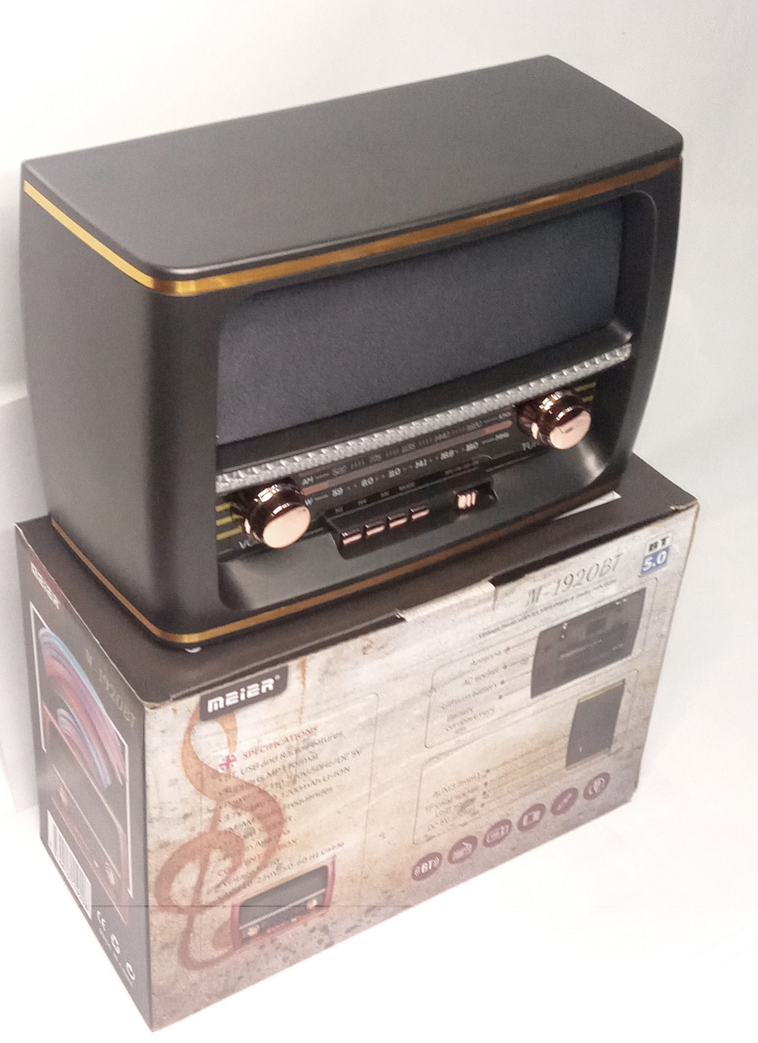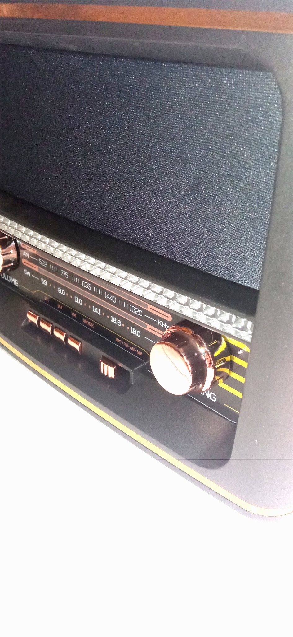Ретро-аудиоустройство имеет уникальный и очаровательный дизайн. Покрытие динамиков и полоса частот очень похожи на традиционные радиоприемники прошлого.