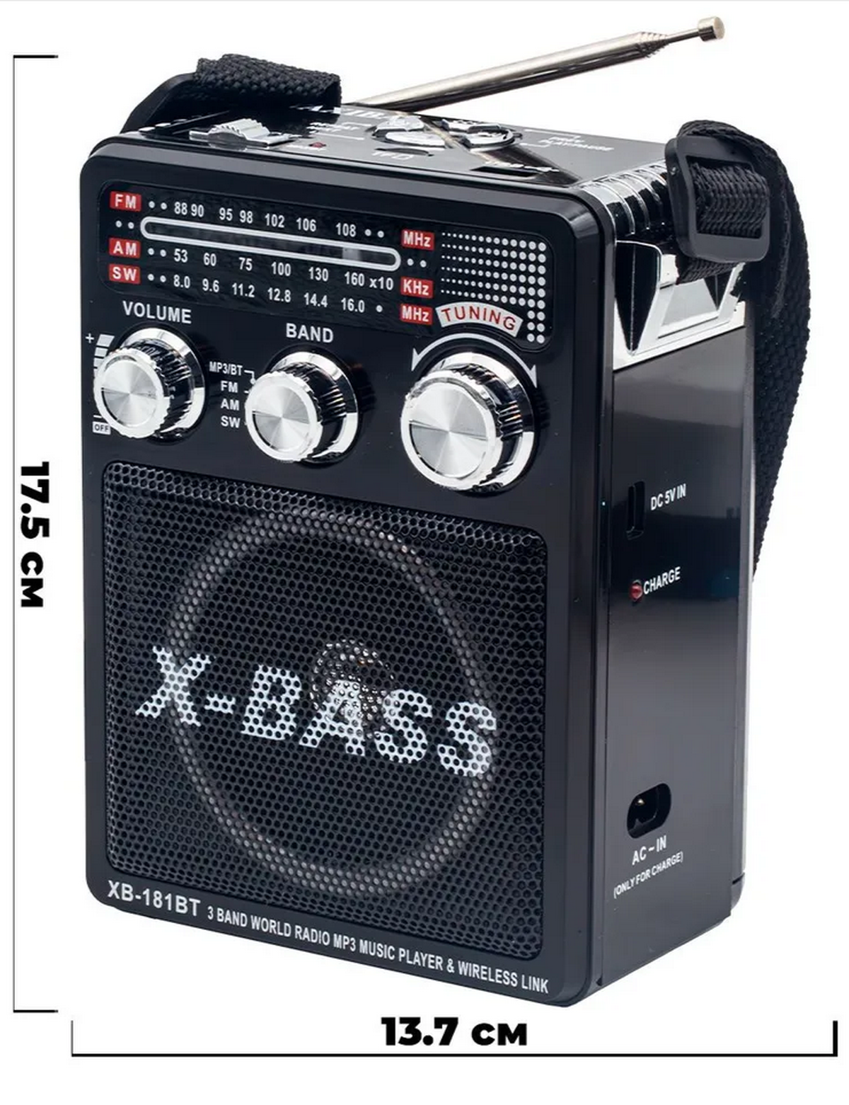 Радиоприемник многофункциональный WAXIBA XB-181BTстанет незаменимым спутником в вашем доме или на природе. С ним вы сможете наслаждаться любимыми радиостанциями благодаря встроенному FM-тюнеру. Он поддерживает различные форматы, включая USB, micro SD и Bluetooth, что делает его идеальным для воспроизведения музыки с ваших носителей.