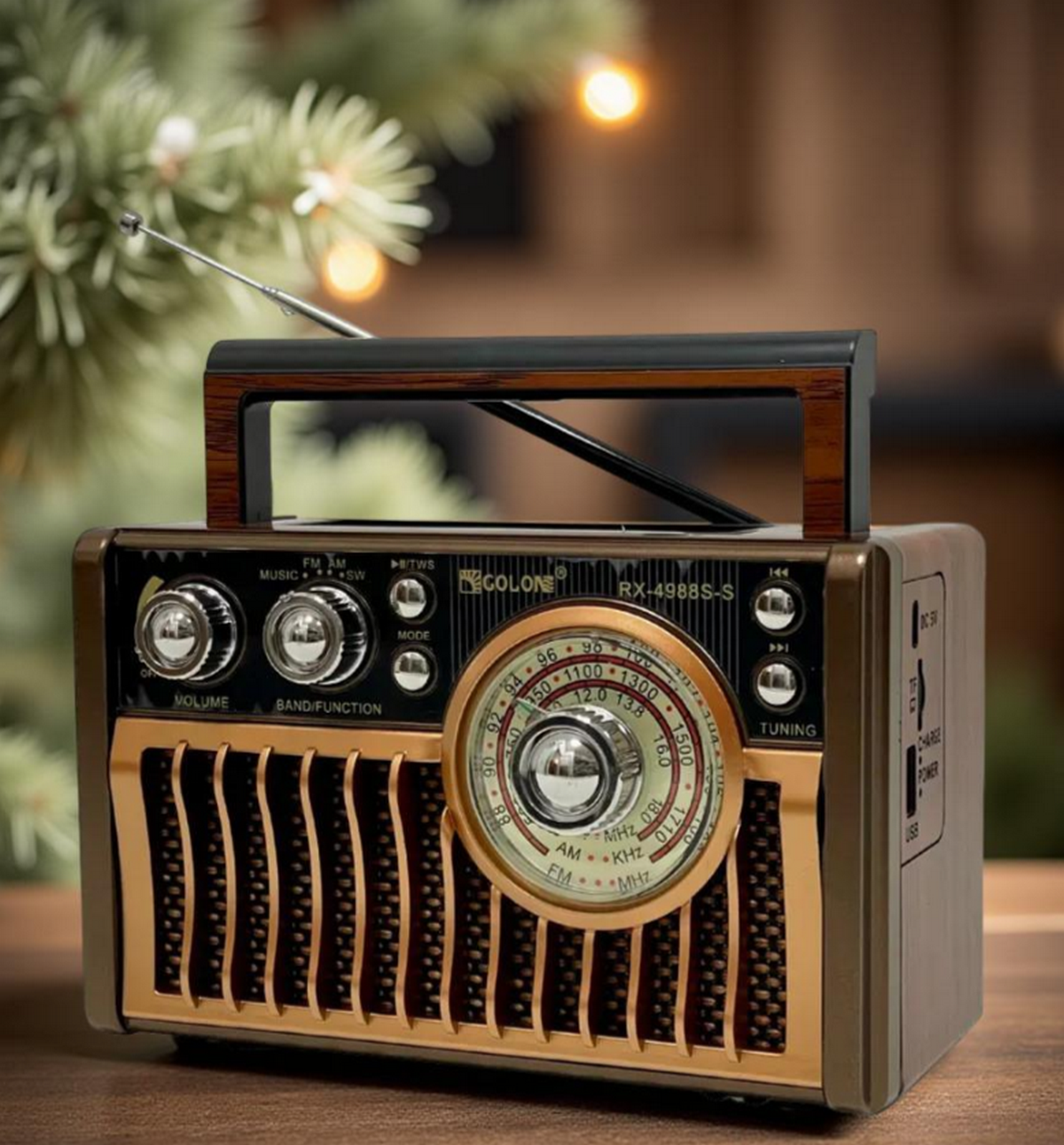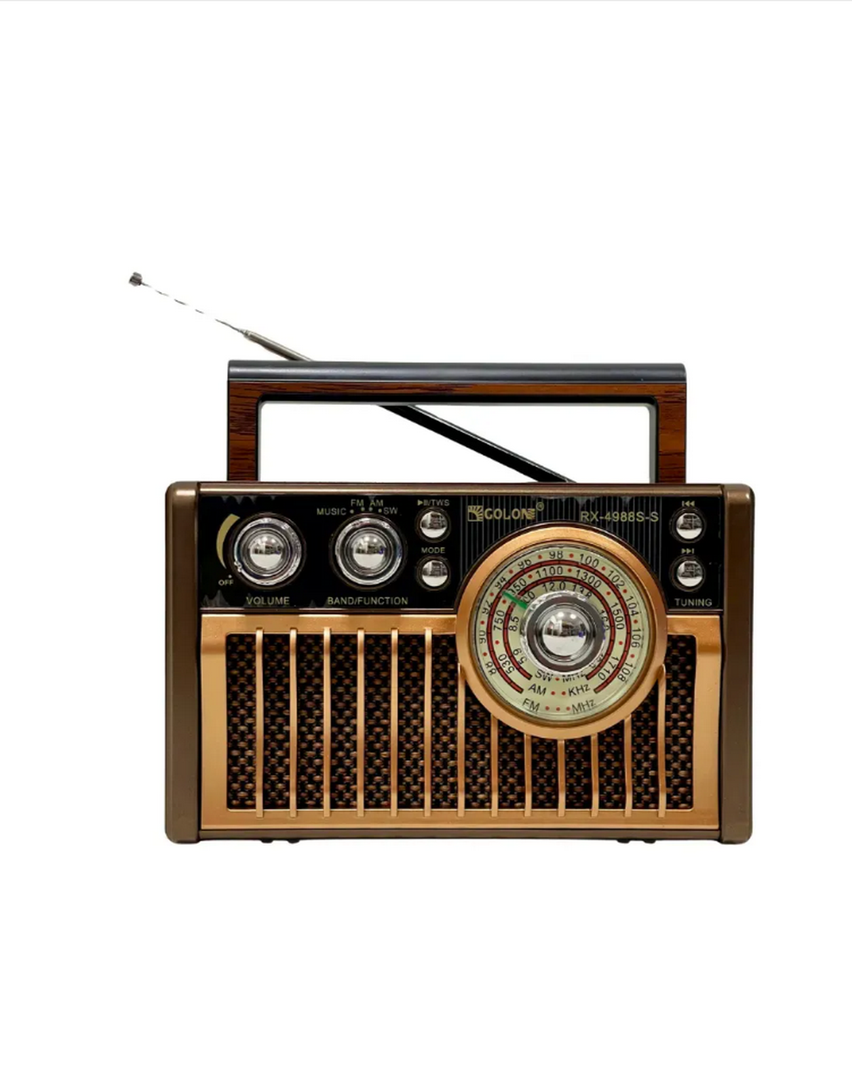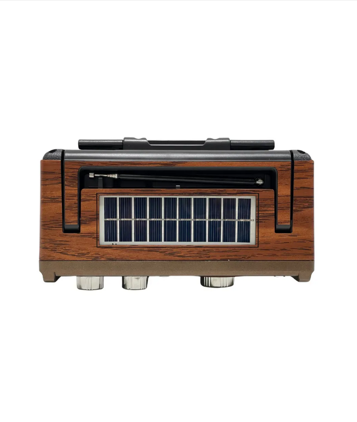 Радиоприёмник Golon RX‑4988S‑S с MP3‑плеером и Bluetooth — многофункциональное устройство для приёма радиостанций и воспроизведения аудио. Поддерживает диапазоны: FM (88–108 МГц), AM (53–171 кГц), SW (5,9–18,0 МГц). Воспроизводит музыку с USB‑накопителей, microSD‑карт, а также по Bluetooth. Оснащён солнечной панелью для подзарядки и литий‑ионным аккумулятором 18650 89 в комплекте), заряжается через USB Type‑C (кабель в комплекте). Мощность динамика — 5 Вт, обеспечивает чистый и громкий звук. Есть выдвижная телескопическая антенна для лучшего приёма сигнала, ручка для переноски и слот для внешнего аккумулятора. Компактный корпус в коричневом цвете, габариты: 185 × 105 × 175 мм, вес — около 1 кг. Идеален для дома, дачи, походов и ситуаций, когда нужен надёжный источник информации и музыки без привязки к электросети.