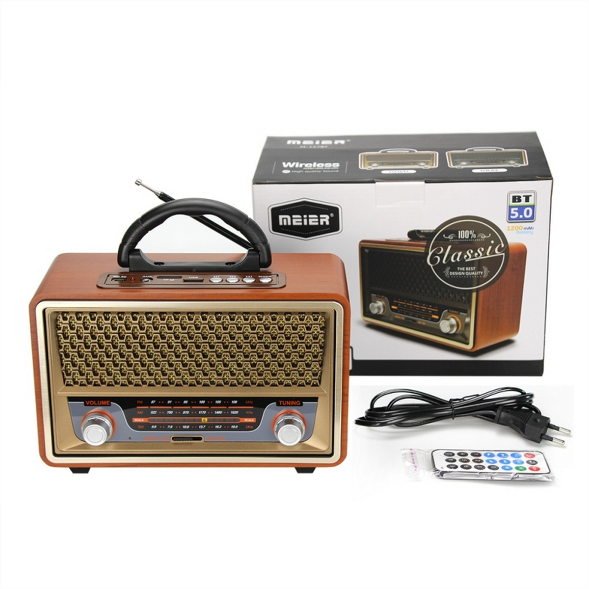 Meier M157BT — это не просто радиоприёмник, а стильный элемент интерьера с духом ретро и полным набором современных функций. Устройство сочетает классический дизайн с поддержкой Bluetooth, MP3‑плеера и возможностью воспроизведения с USB и SD‑карт. Идеальный выбор для ценителей аналоговой эстетики и цифрового комфорта.