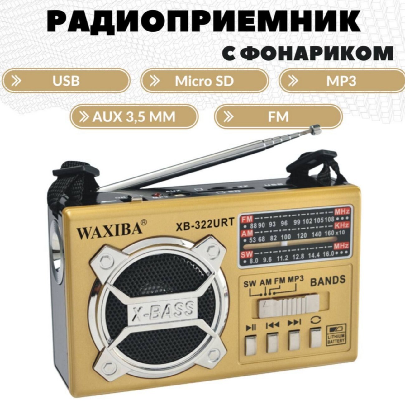 Компактный радиоприемник Waxiba XB-322URT, обеспечивающий громкое и чистое звучание, несмотря на небольшие размеры. Мощная телескопическая антенна способна уловить даже труднодоступные частоты, а емкостный аккумулятор гарантирует, что устройство не разрядится спустя долгое время непрерывной эксплуатации.