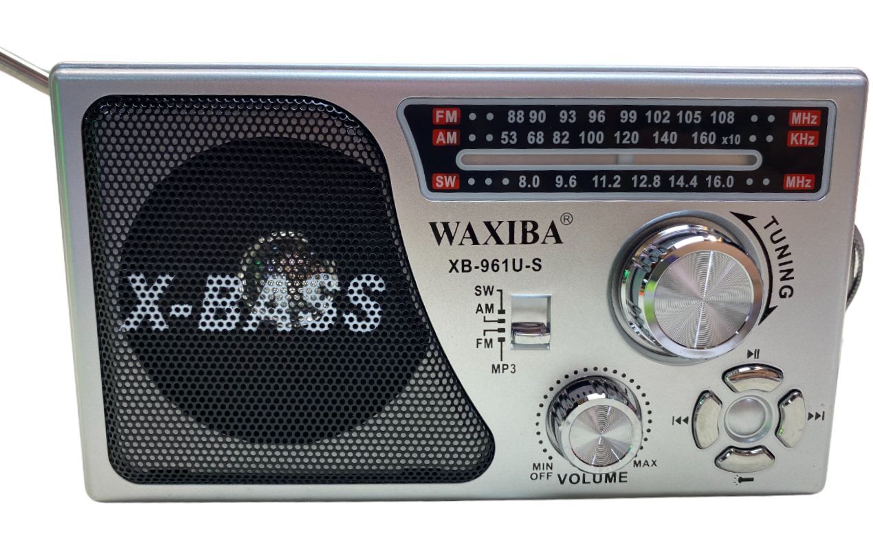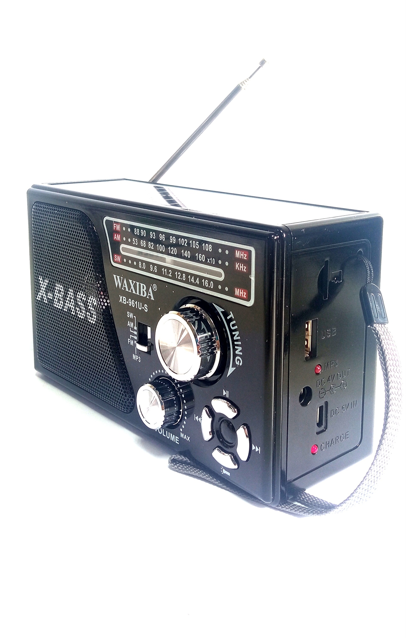 Новай радиоприемник XB-961U-S с солнечной зарядной панелью "SOLAR" и прежними функциями (micro SD+USB, Fm, фонарик).Радиоприёмник c USB/SD функцией и съемным аккумулятором торговой марки "Waxiba".Принимает трансляции радиостанций в FM/AM/SW1-7 диапазонах, а также воспроизводит аудиофайлы в формате MP3/WMA (музыка и аудиокниги). Радиоприемник Waxiba XB-961U-S, имеет встроенный фонарик, всегда под рукой, для Вашего удобства! Отличный выбор для дома или дачи! FM: 88-108 MHz. AM: 530-1600 KHz. SW: 8-16.0 MHz. Фонарик - 1LED.